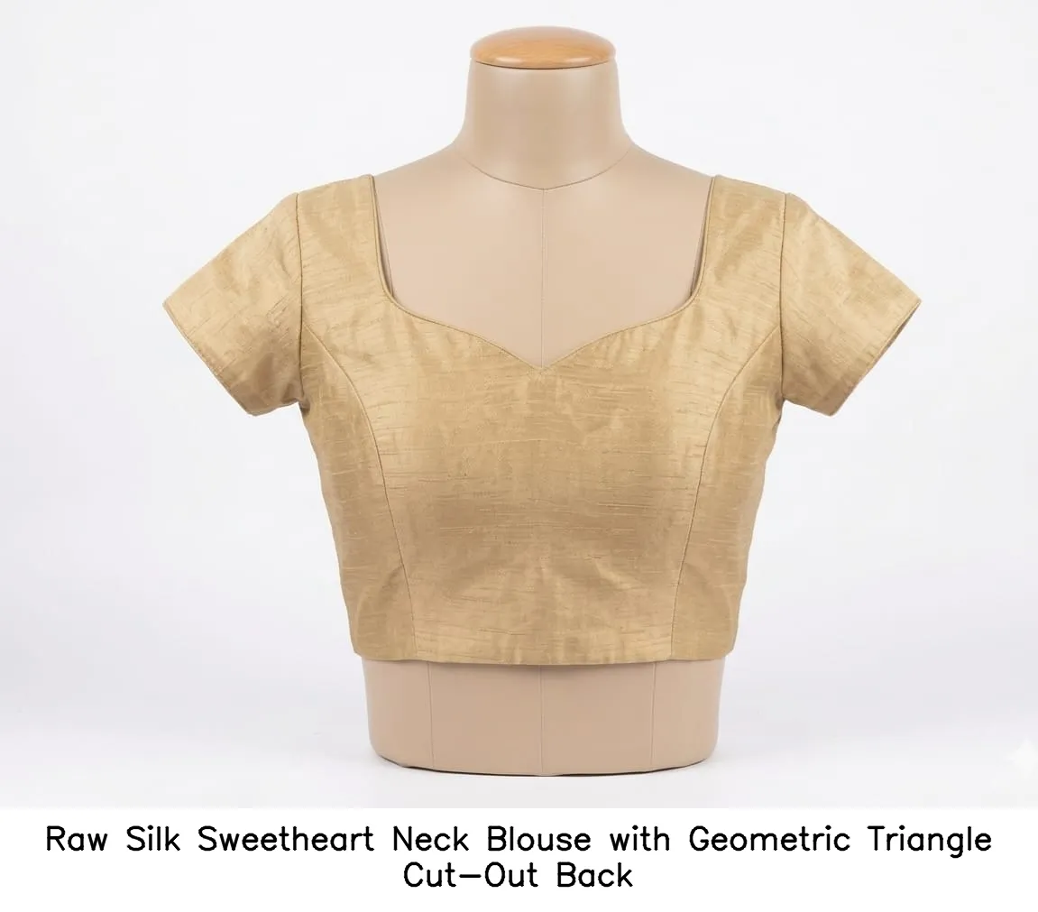 Introducing the exquisite Raw Silk Sweetheart Neck Blouse with Geometric Triangle Cut-Out Back. This designer blouse offers a stunning blend of elegance and modern style. Perfect for any occasion, it features a charming sweetheart neckline that enhances your silhouette.