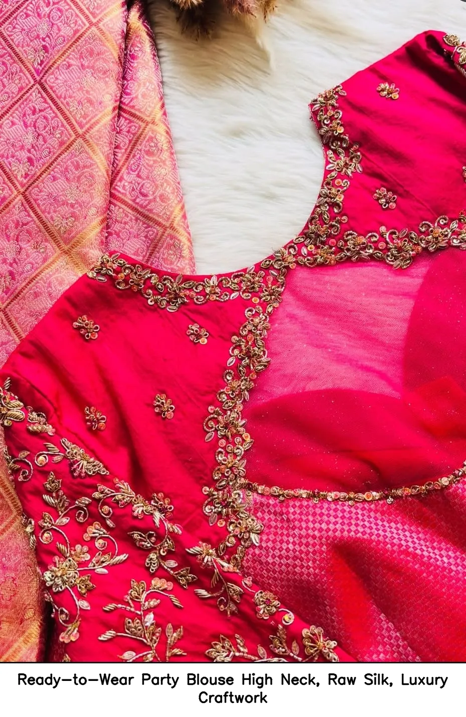 Ready-to-Wear Party Blouse – High Neck, Raw Silk, Luxury Craftwork Features and Benefits