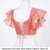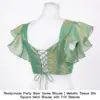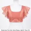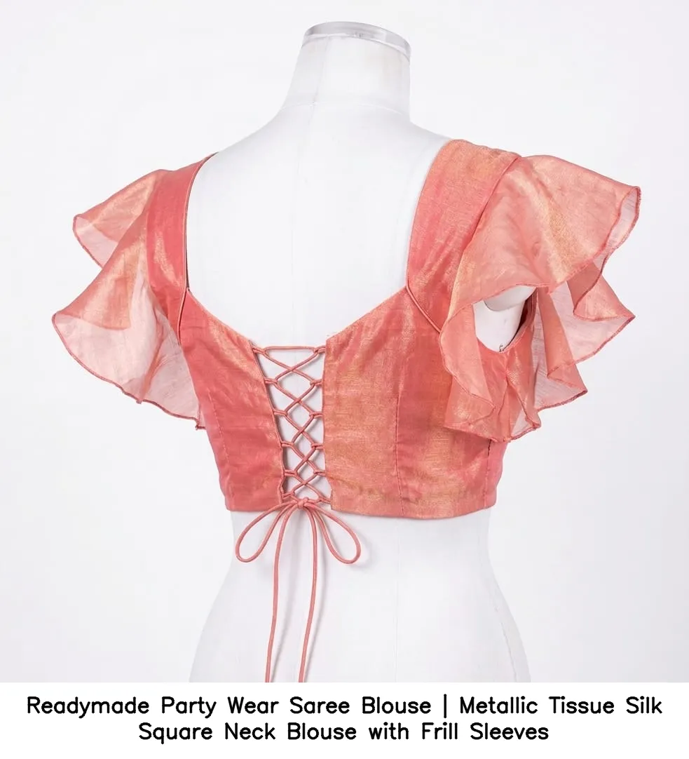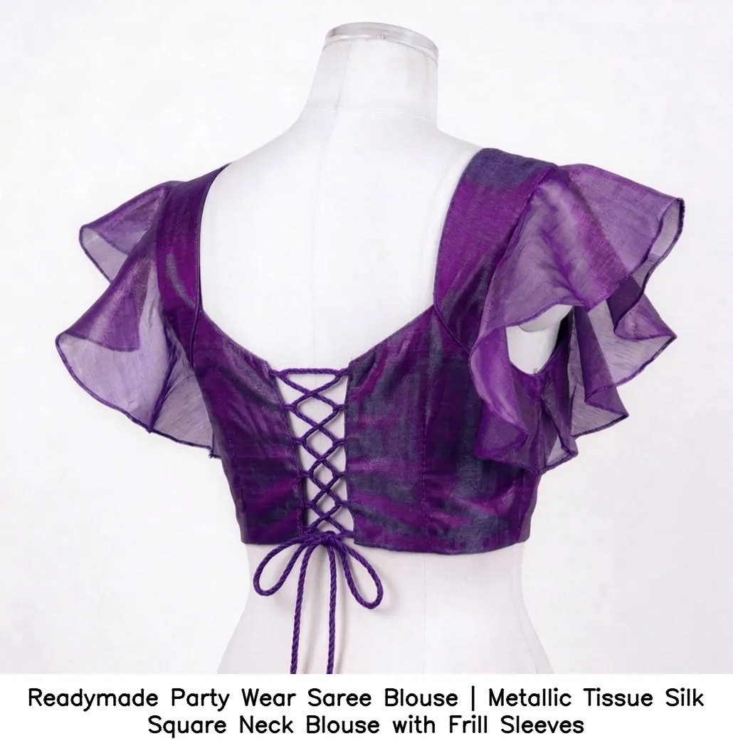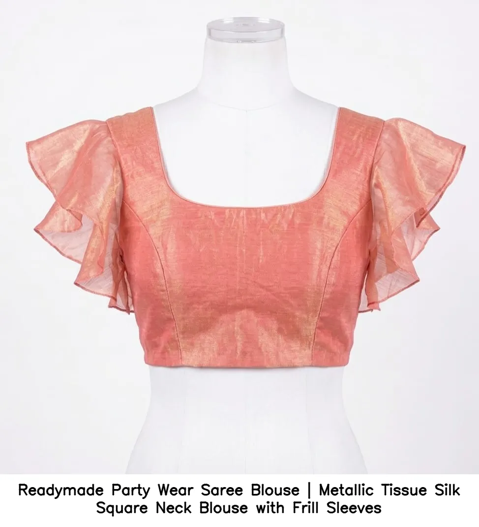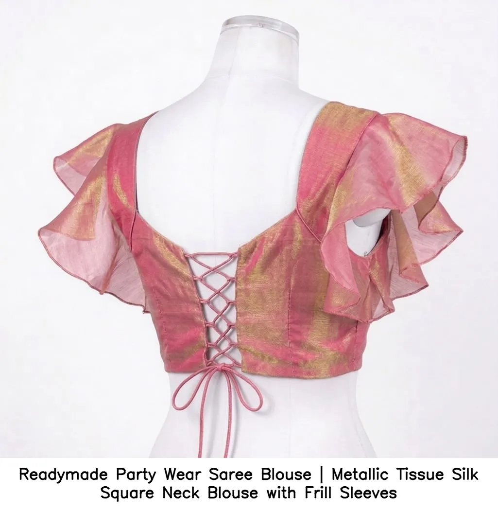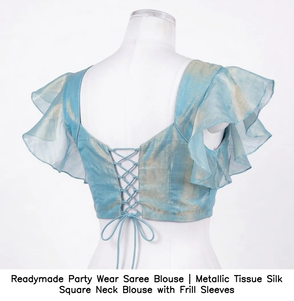 Readymade Party Wear Saree Blouse | Metallic Tissue Silk Square Neck Blouse with Frill Sleeves