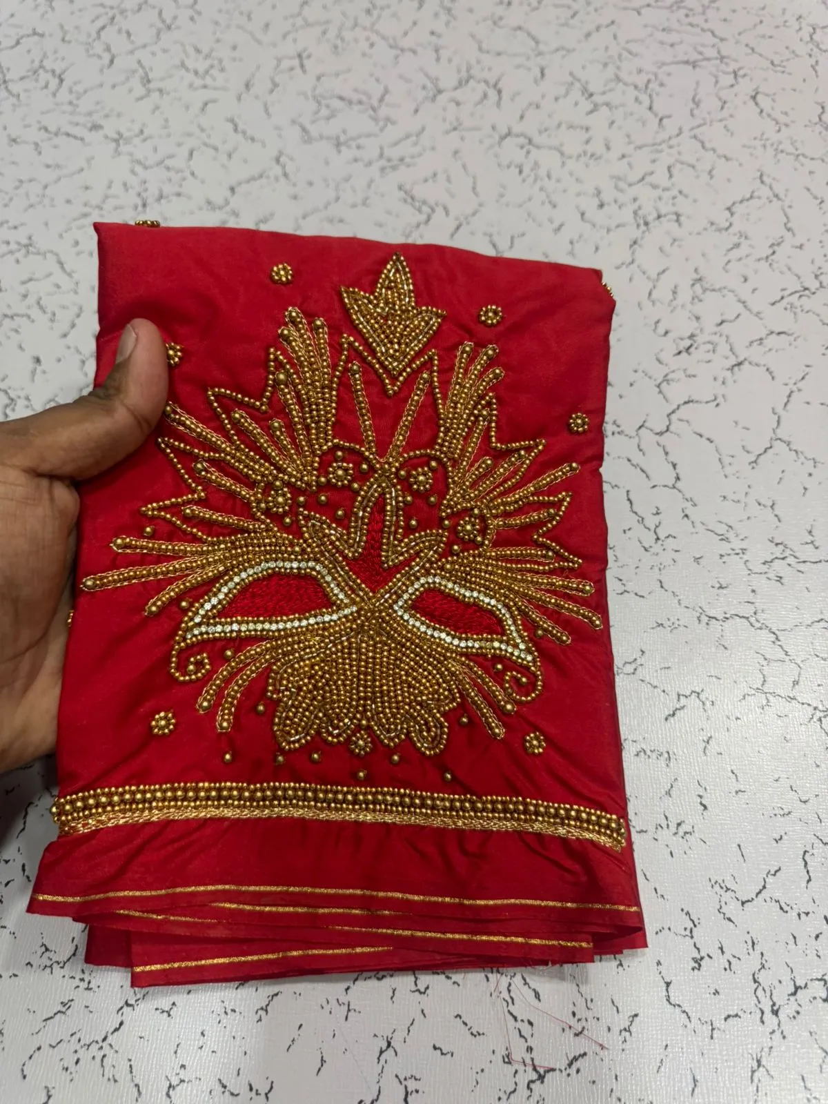 Red Beads Simple Maggam Work Blouse Under ₹600 Budget Designer Pick