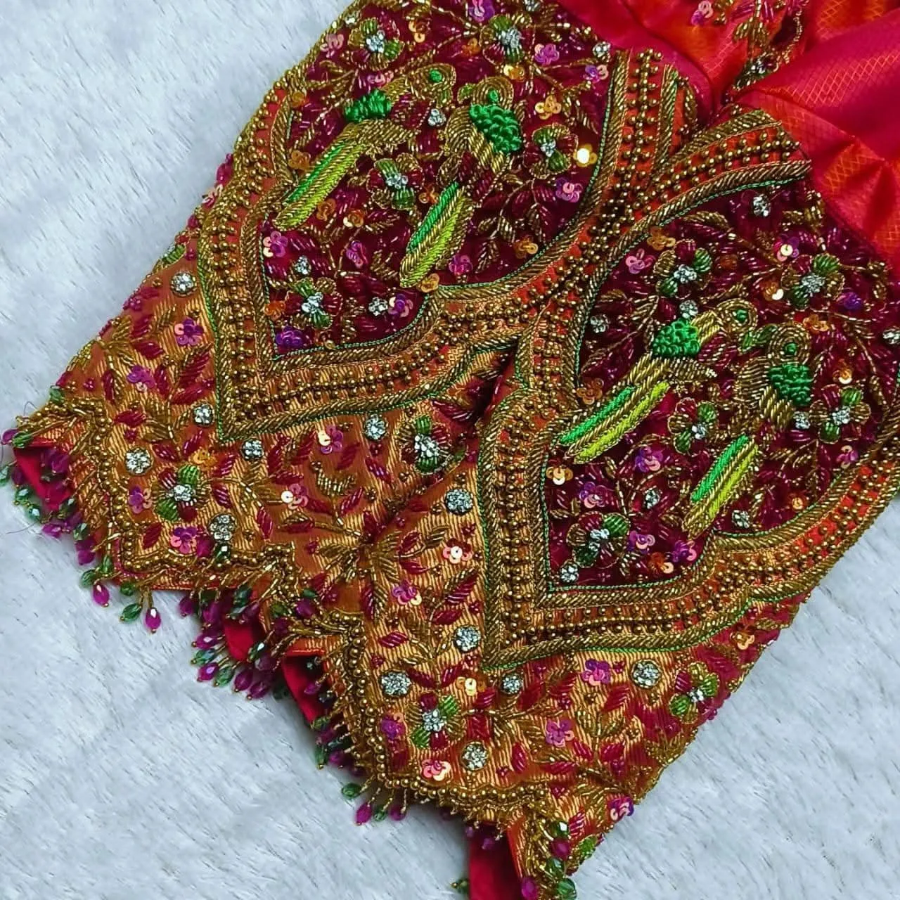 Product Name: Red Bridal Bird Motif Maggam Work Blouse Premium Wedding Wear for Grand Celebrations