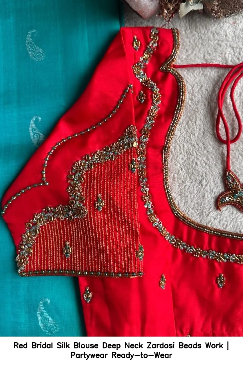 Why Choose Red Bridal Silk Blouse – Deep Neck Zardosi Beads Work | Partywear Ready-to-Wear?