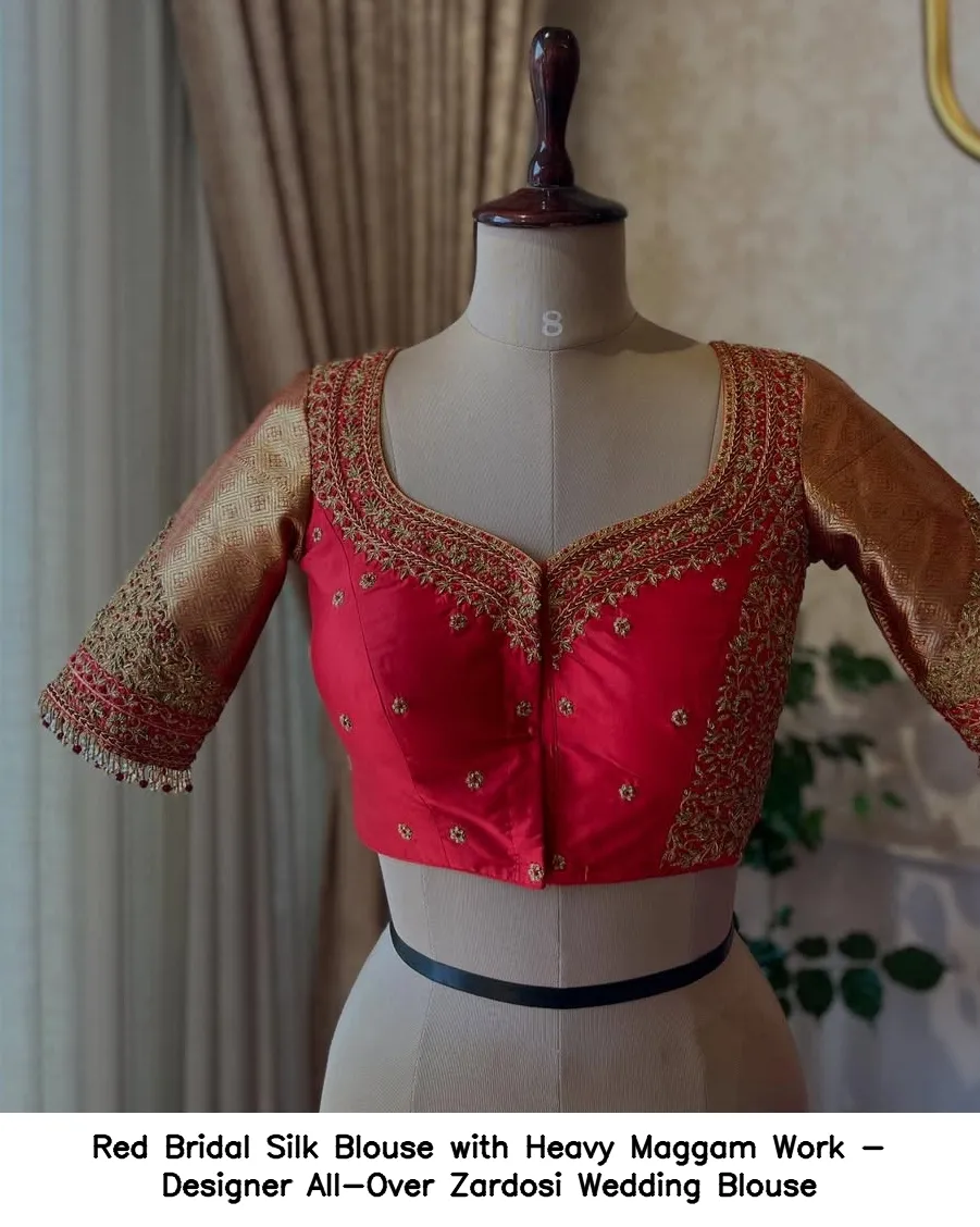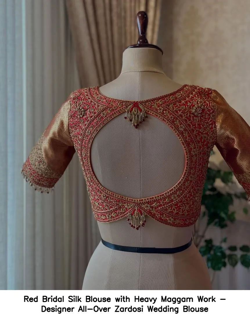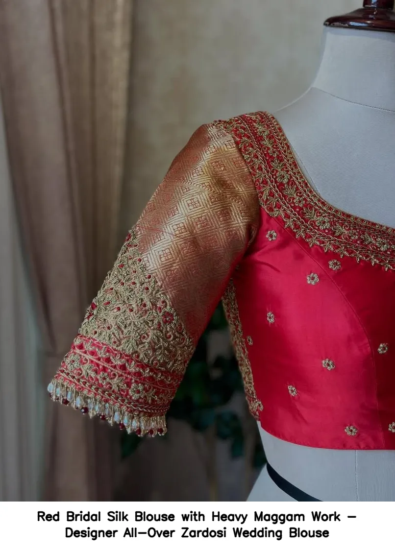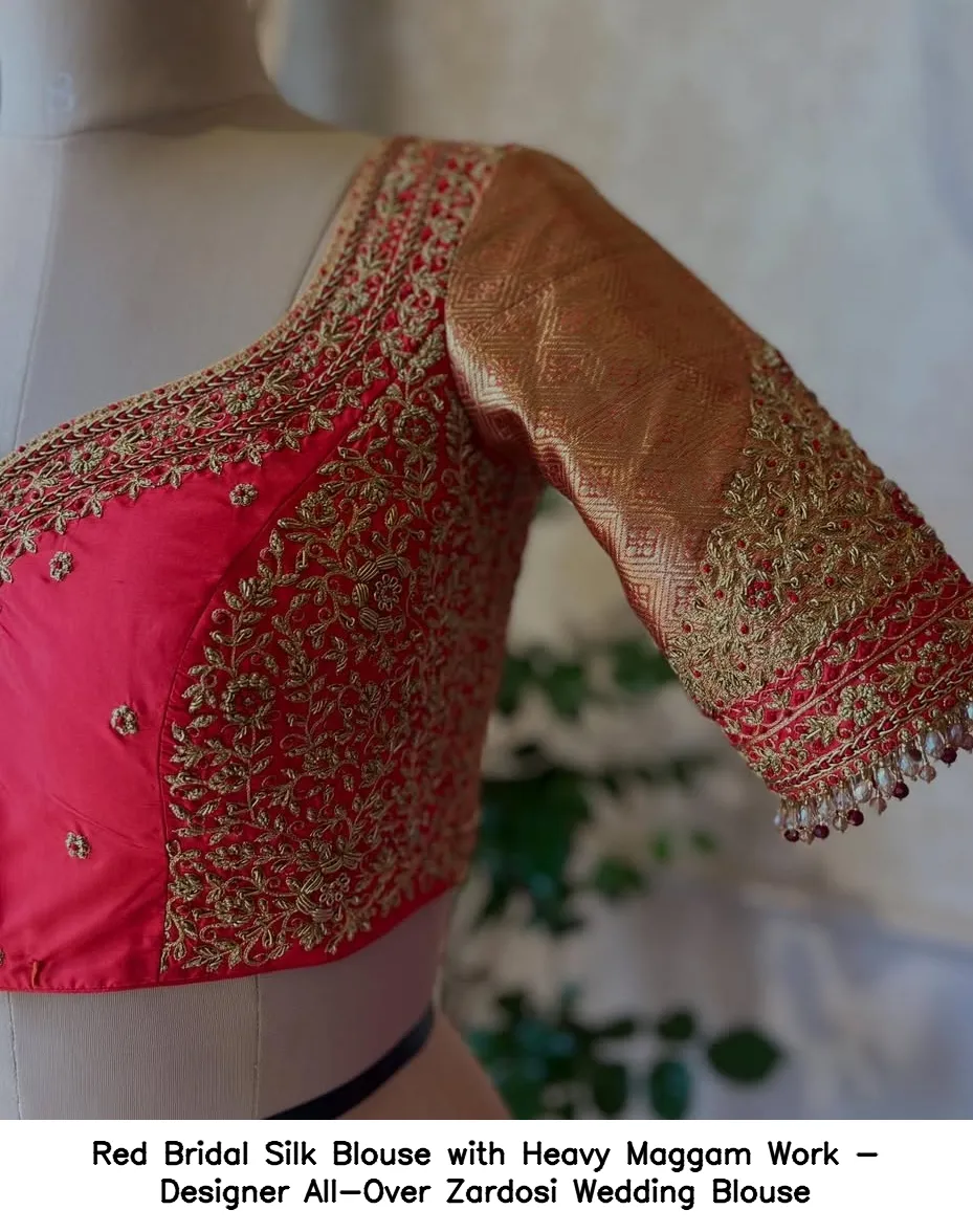 ​Red Bridal Silk Blouse with Heavy Maggam Work – Designer All-Over Zardosi Wedding Blouse