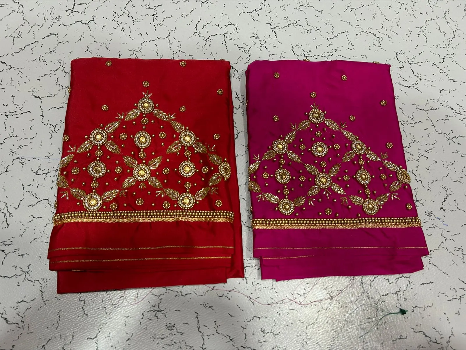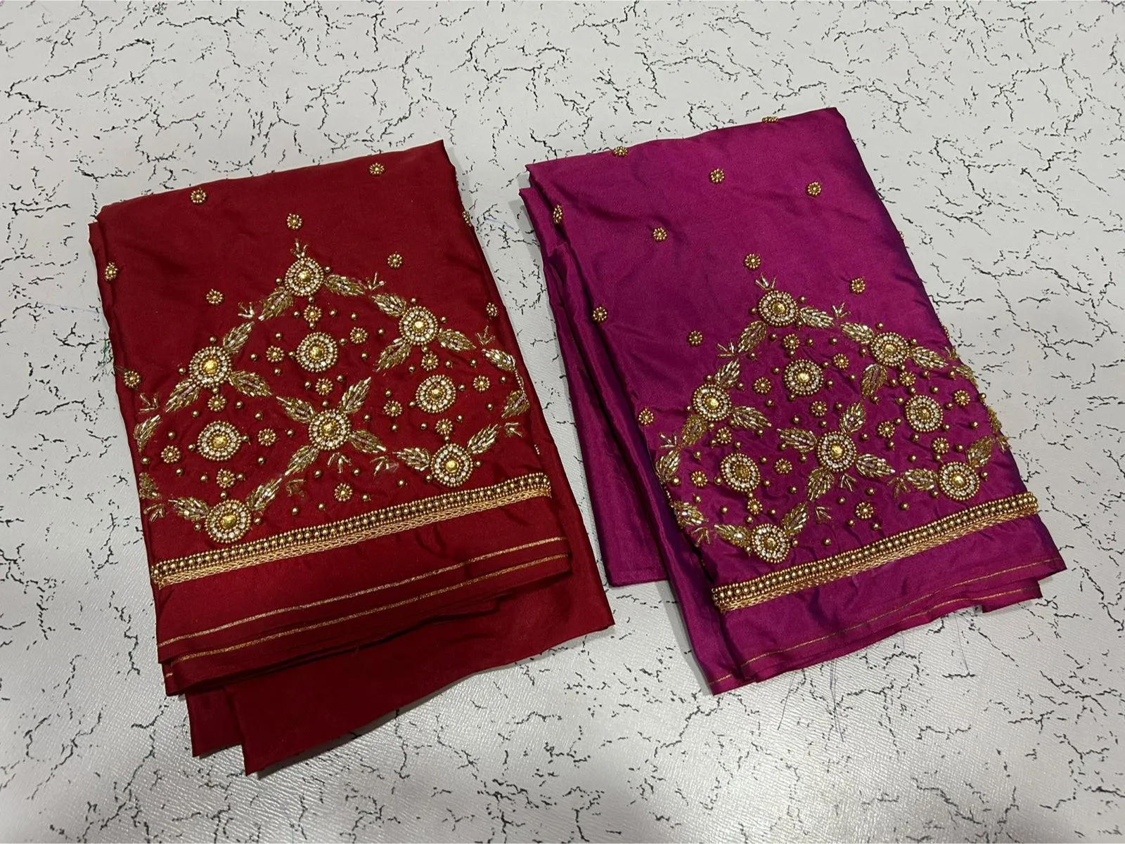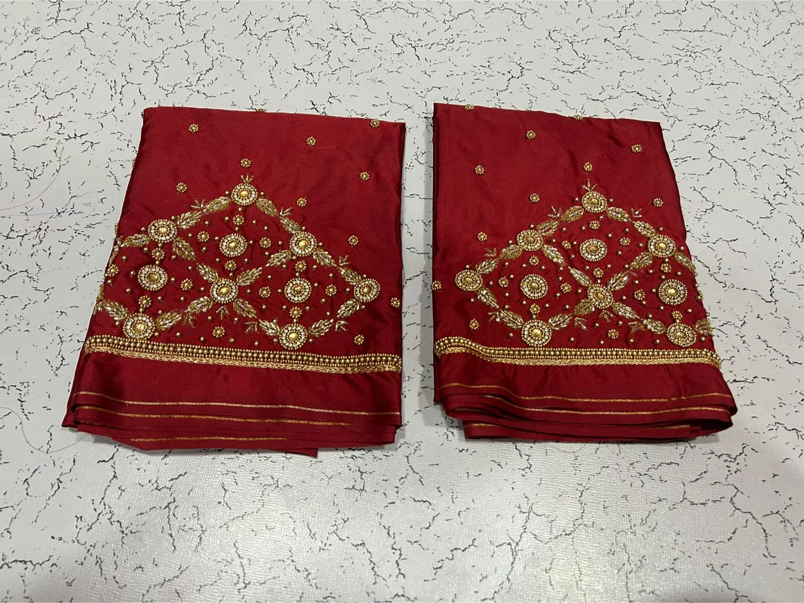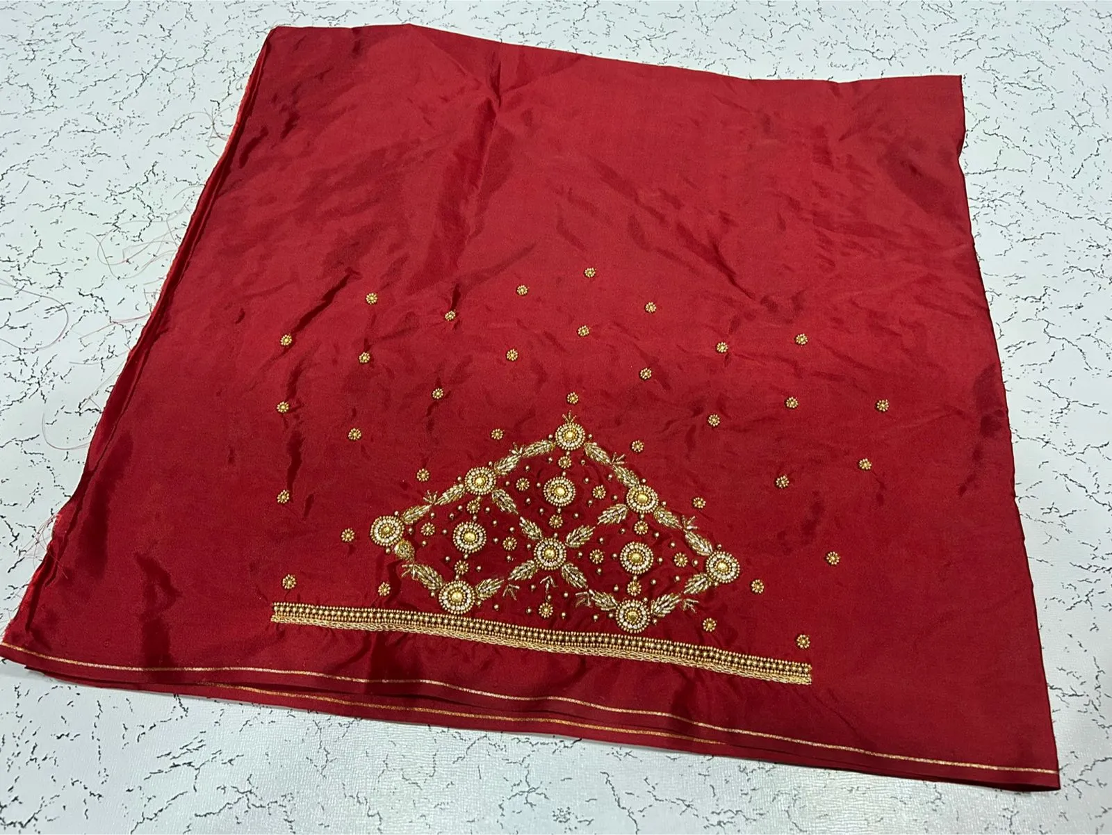 Stunning Red Raw Silk with Maggam Work blouse. Crafted for wedding and festive wear, pairs beautifully with silk sarees and lehengas.