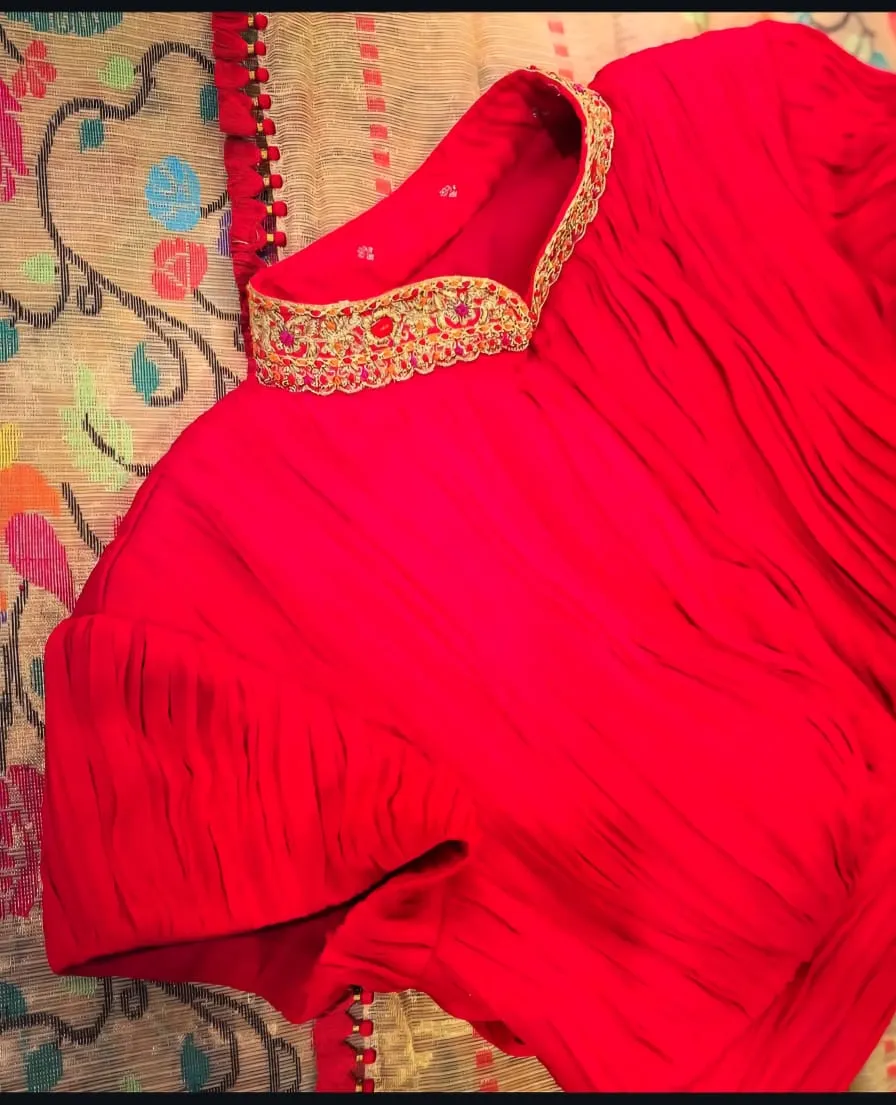 Product Name: Red Collar Neck Wedding Maggam Work Blouse Luxury Bridal Design at Best Price Custom Sizes Available