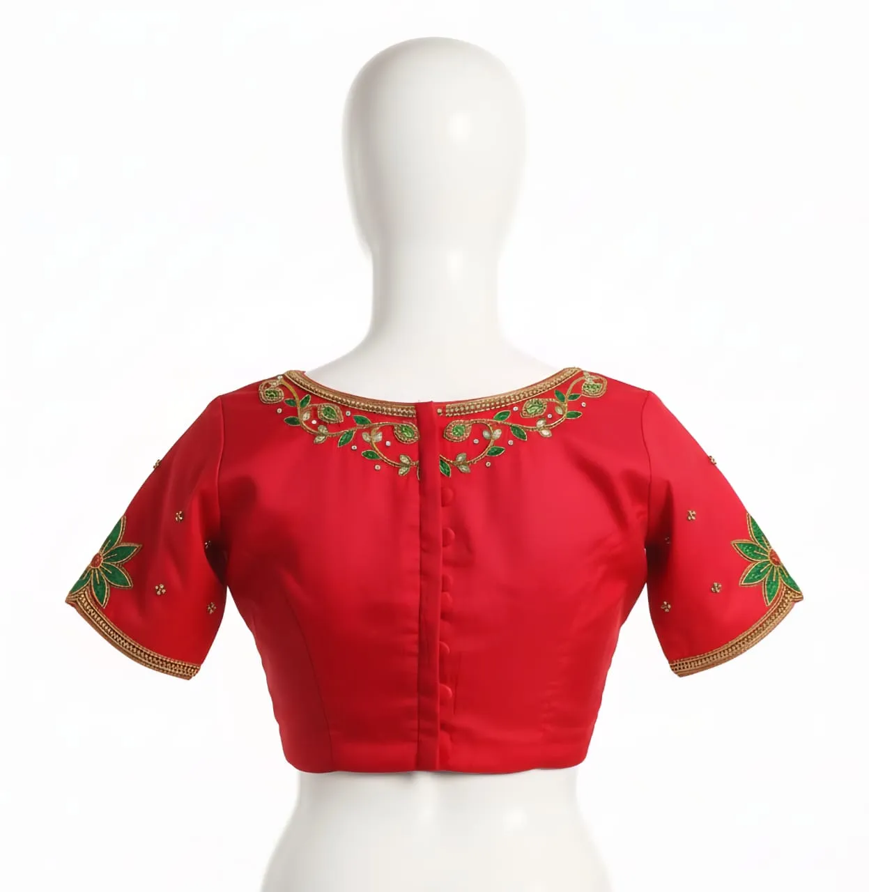 Product Name: Red High-Neck Maggam Blouse Elegant Partywear Budget Price with Custom Stitching