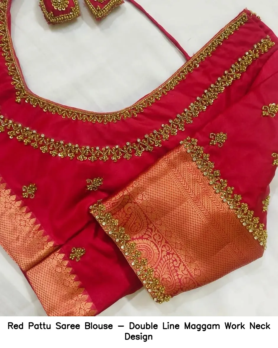 ​​​​Red Pattu Saree Blouse – Double Line Maggam Work Neck Design