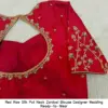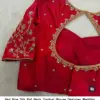 Product Name: Red Raw Silk Pot Neck Zardosi Blouse – Designer Wedding Ready-to-Wear