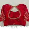 Product Name: Red Raw Silk Pot Neck Zardosi Blouse – Designer Wedding Ready-to-Wear