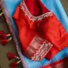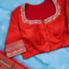 Product Name: ​Red Silk Bridal Blouse with Silver Zari Border and Aari Work Neckline
