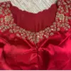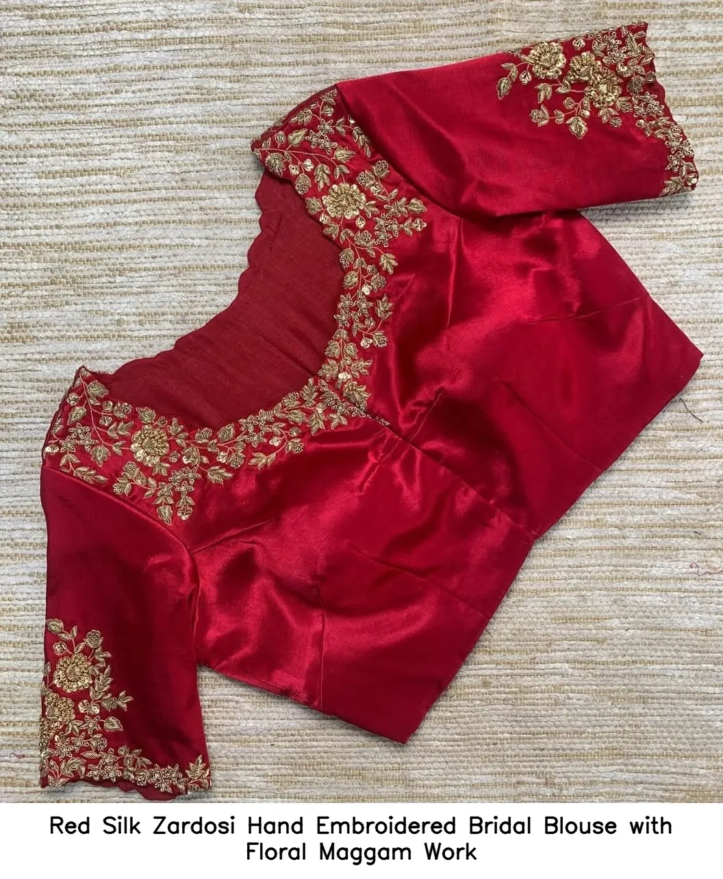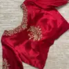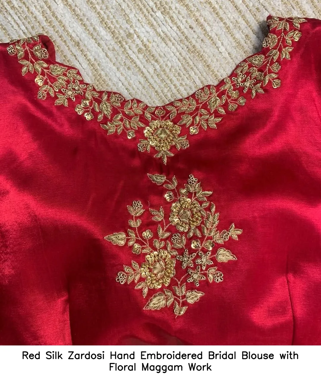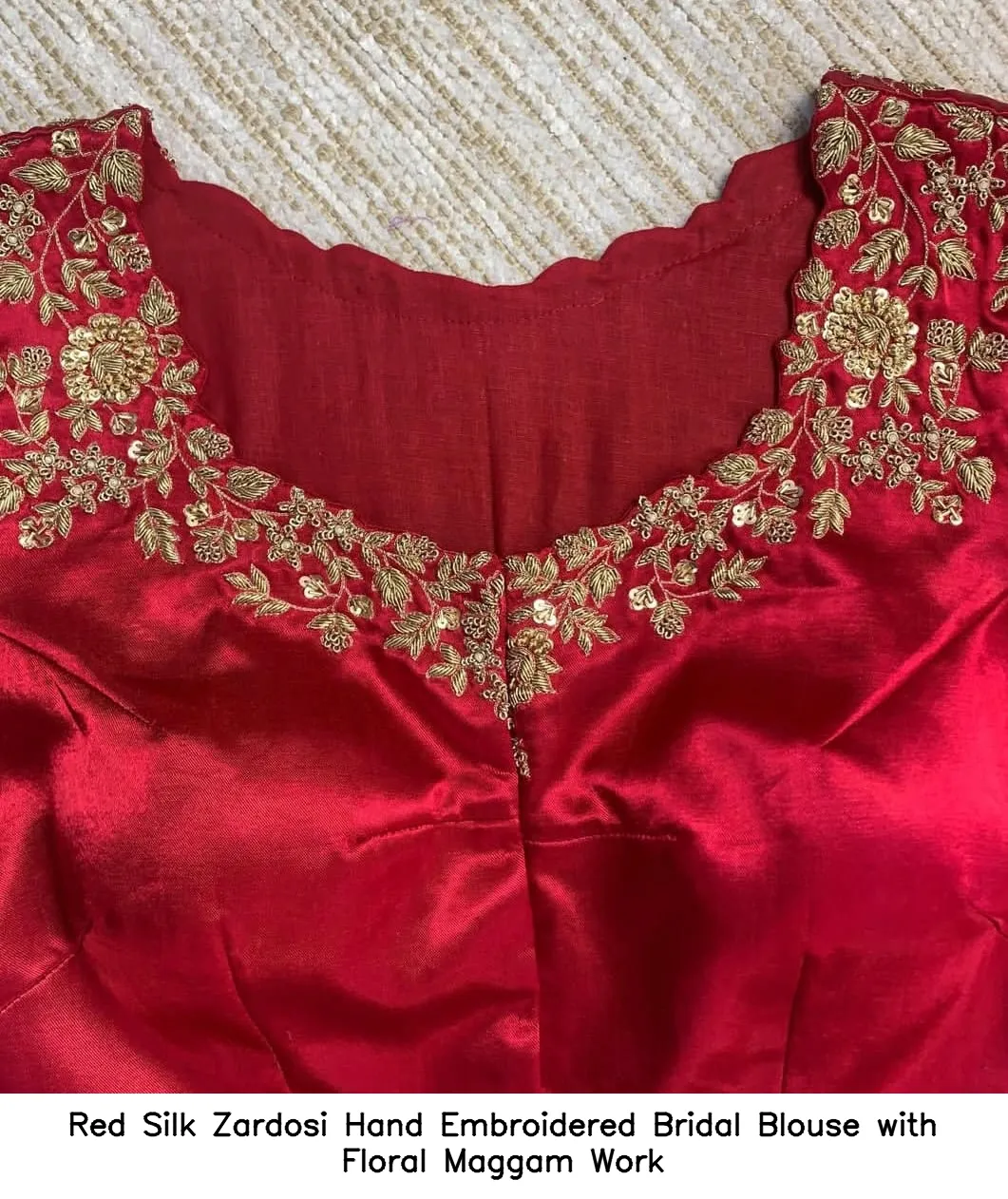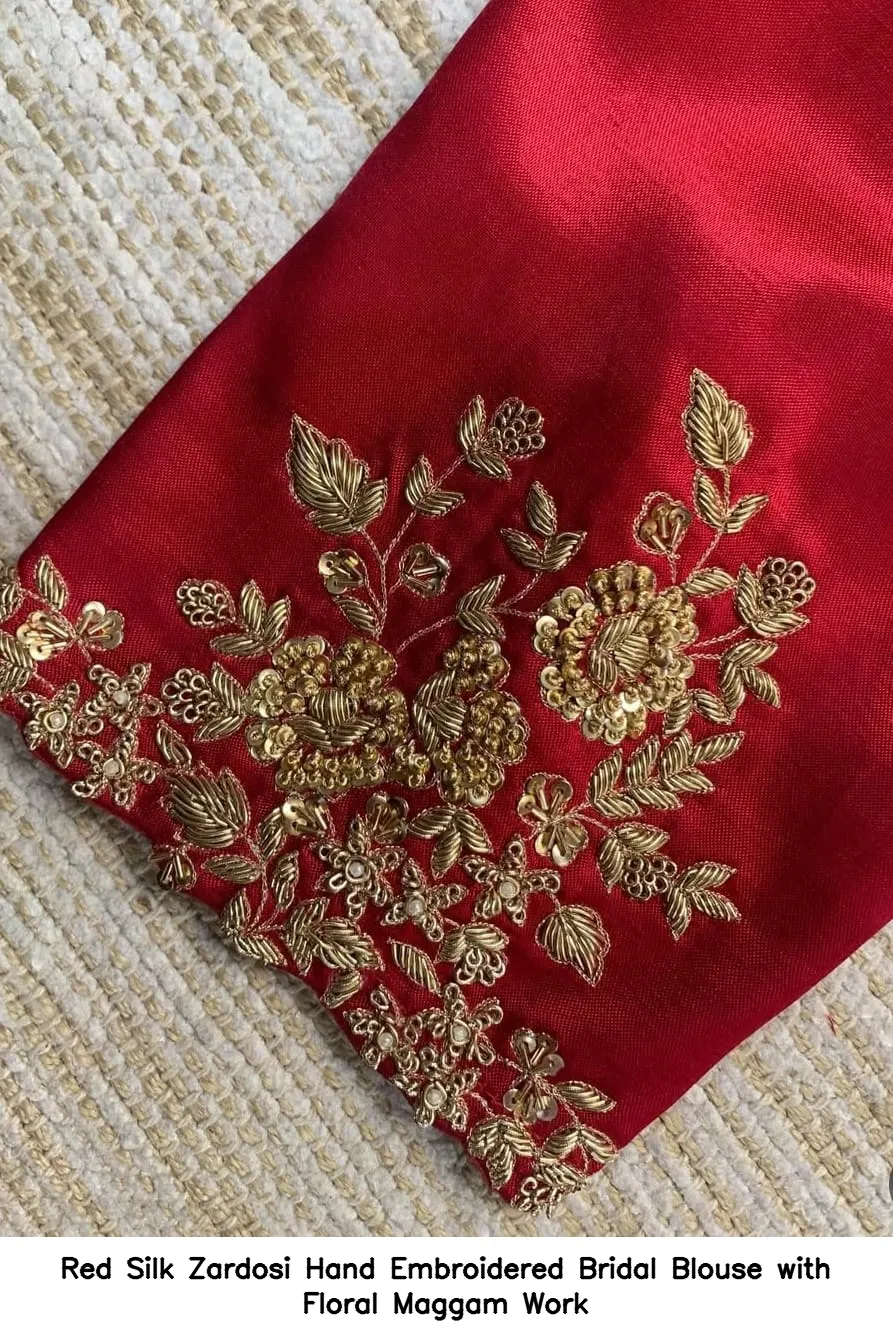 Product Name: Red Silk Zardosi Hand Embroidered Bridal Blouse with Floral Maggam Work