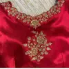 Red Silk Zardosi Hand Embroidered Bridal Blouse with Floral Maggam Work