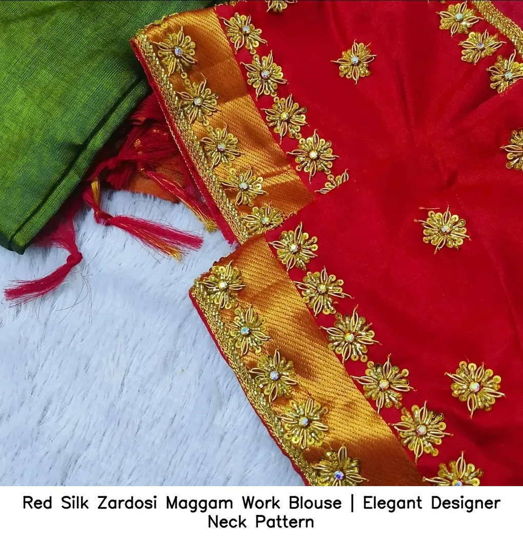 Why Choose Red Silk Zardosi Maggam Work Blouse | Elegant Designer Neck Pattern?