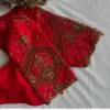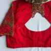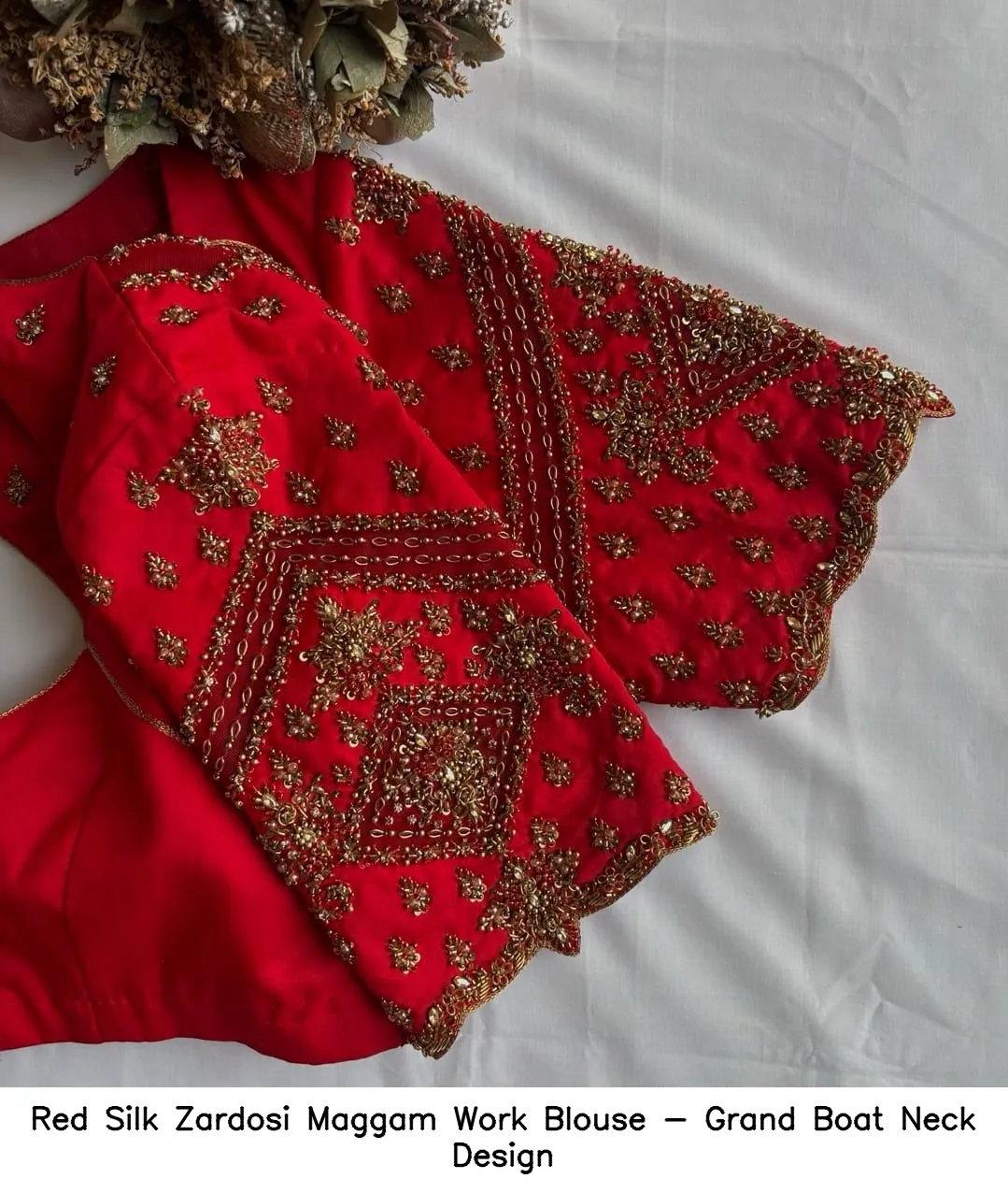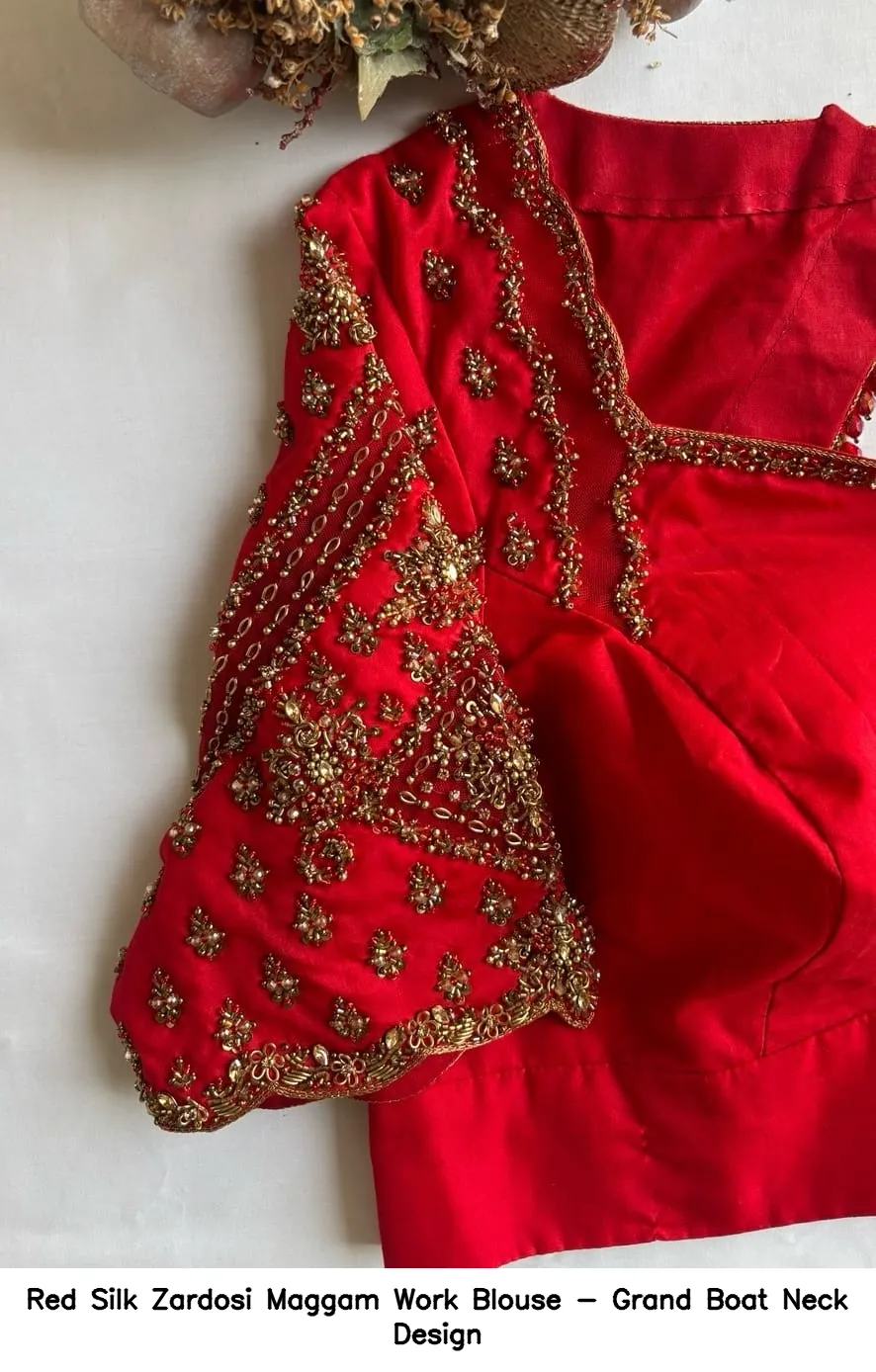 Product Name: Red Silk Zardosi Maggam Work Blouse – Grand Boat Neck Design