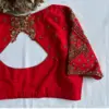 Red Silk Zardosi Maggam Work Blouse – Grand Boat Neck Design