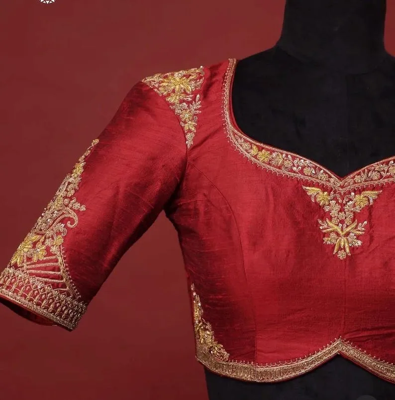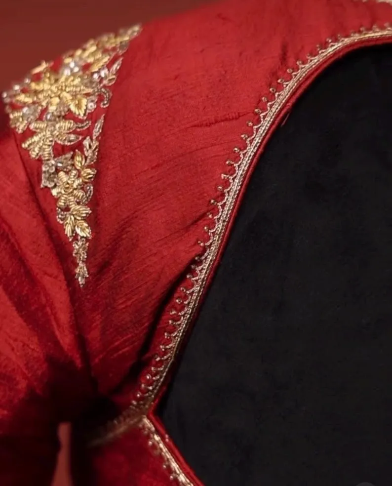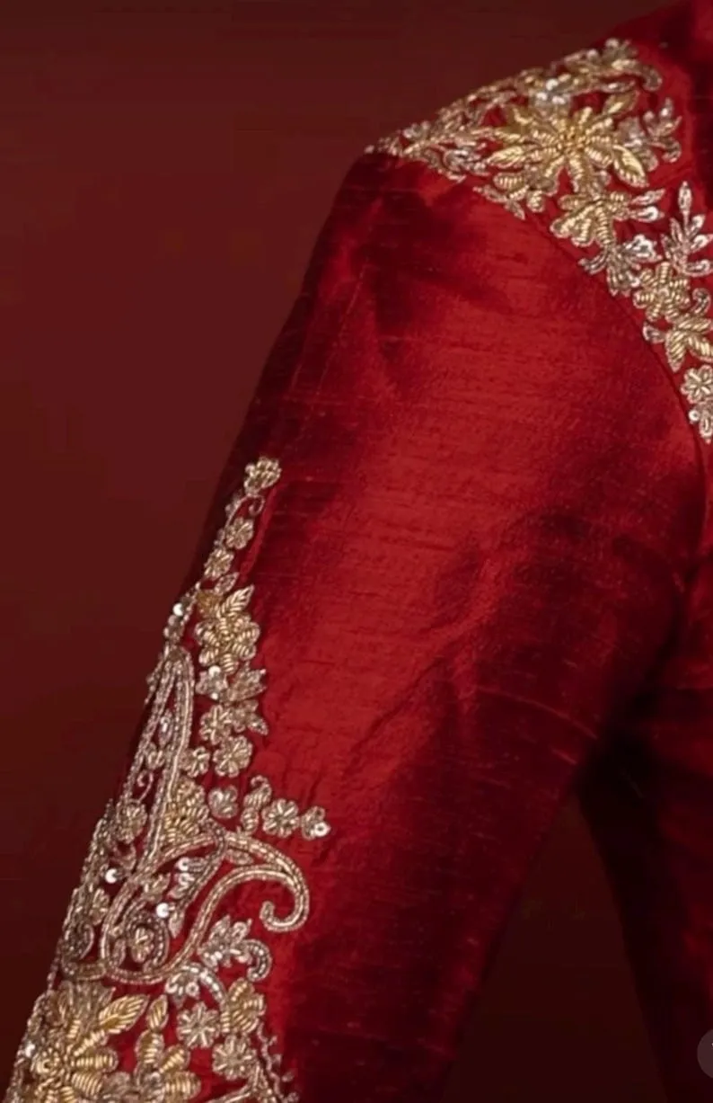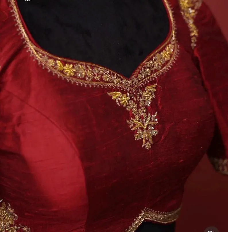 Reddish Maroon Raw Silk Zardosi Maggam Blouse Elegant Designer Look Under Budget