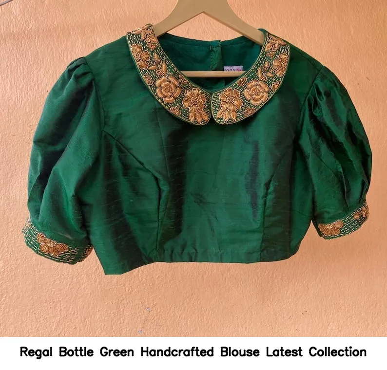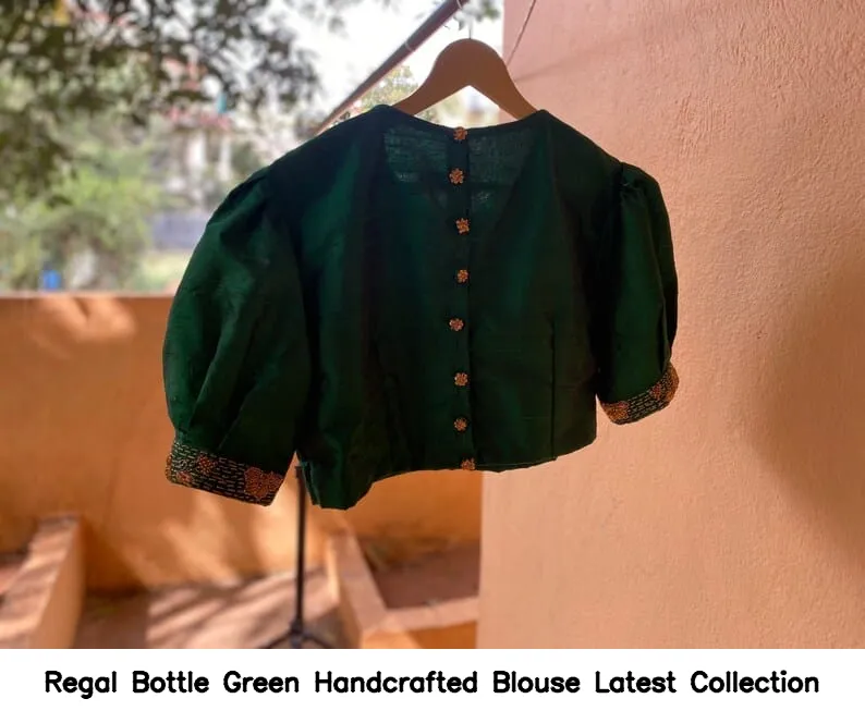 Regal Bottle Green Handcrafted Blouse – Latest Collection