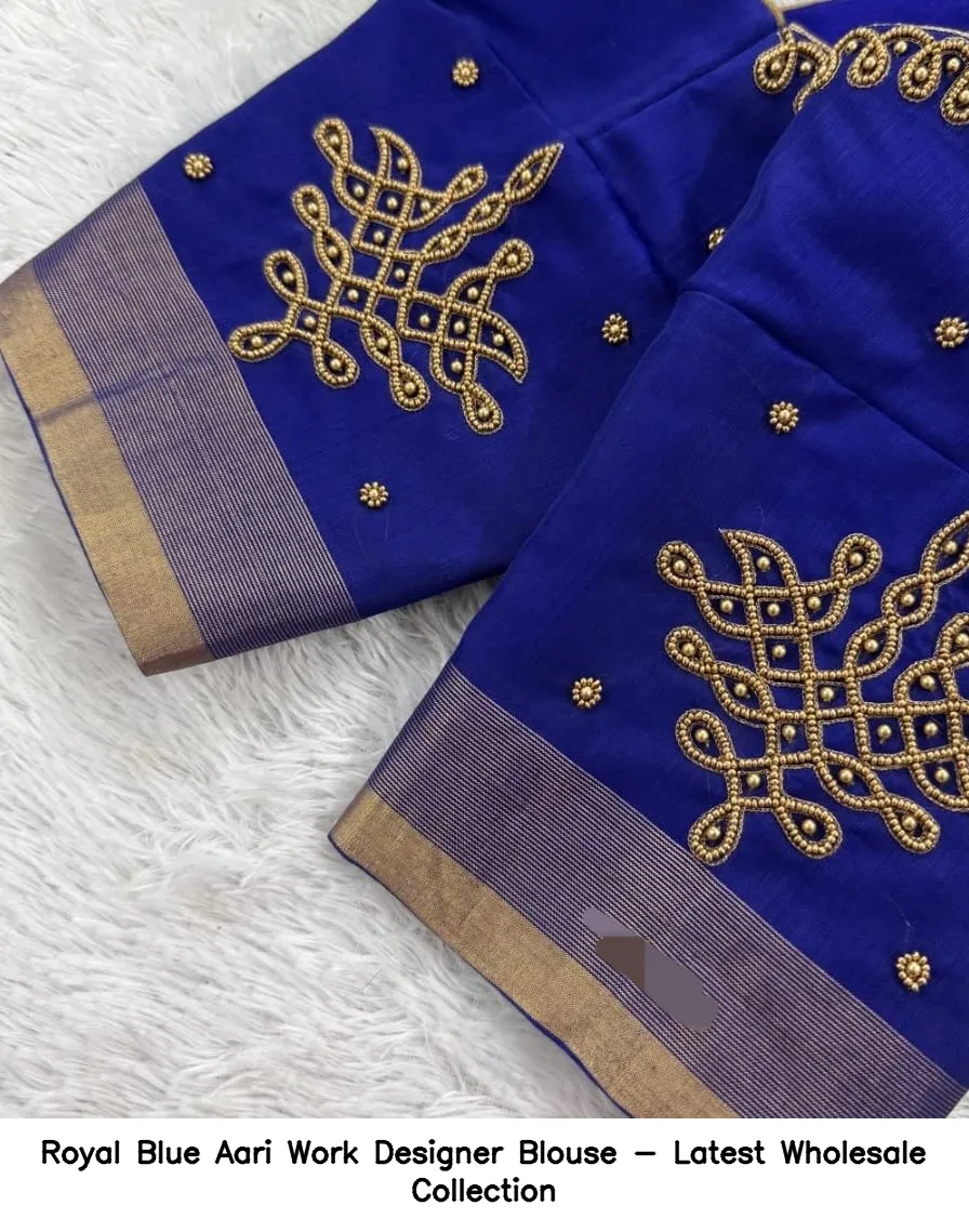 Royal Blue Aari Work Designer Blouse – Latest Wholesale Collection