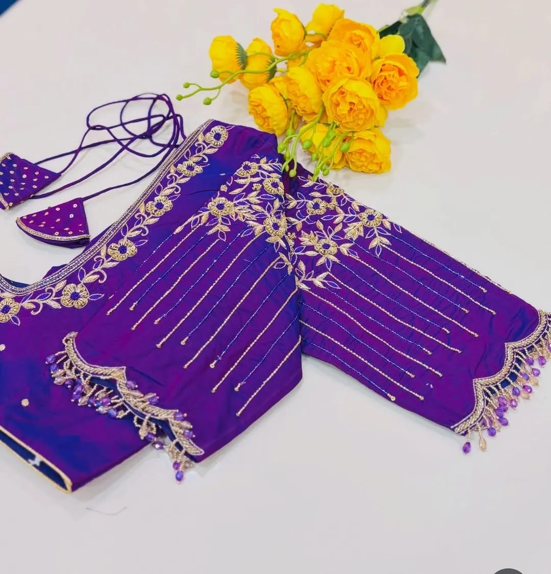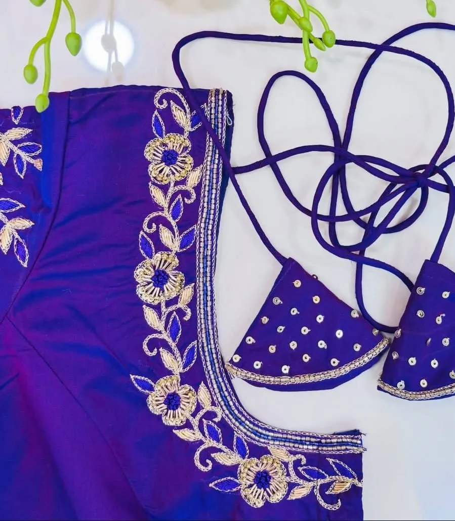 Product Name: Royal Blue Designer Maggam Work Blouse with Gold Silver Zardosi Bridal Luxury Edition