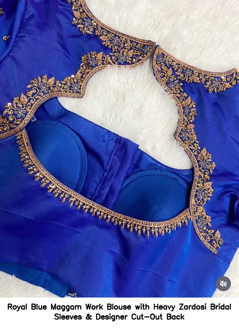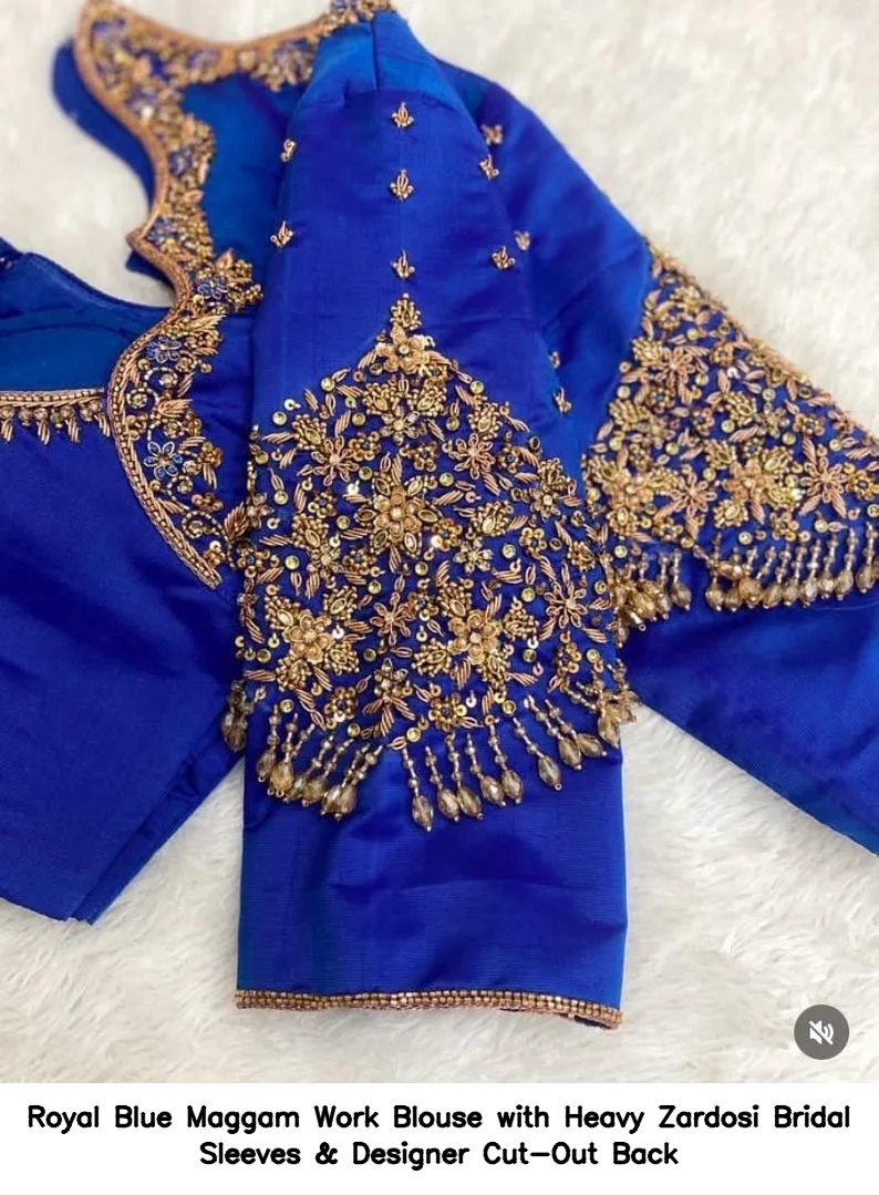 Why Choose Royal Blue Maggam Work Blouse with Heavy Zardosi Bridal Sleeves & Designer Cut-Out Back?