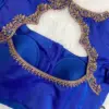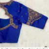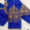 Product Name: Royal Blue Maggam Work Blouse with Heavy Zardosi Bridal Sleeves & Designer Cut-Out Back