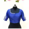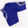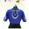 To maintain the quality of your Royal Blue Silk Blouse with Silver Floral Aari Work – Trendy Keyhole Back & Asymmetric Neck Designer Blouse, hand wash in cold water and hang to dry. Avoid direct sunlight to preserve the vibrant color.