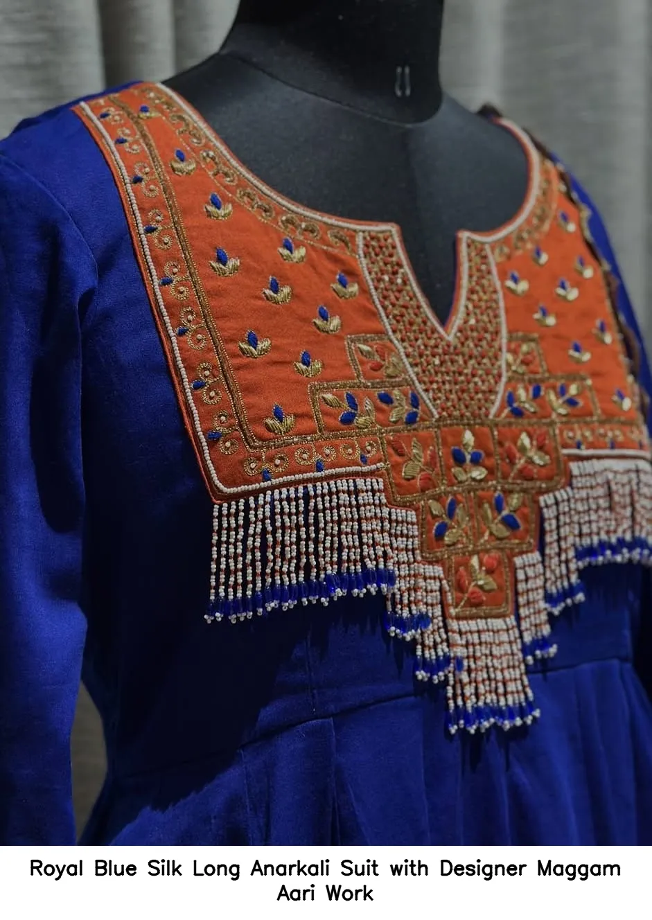 Why Choose Royal Blue Silk Long Anarkali Suit with Designer Maggam Aari Work?