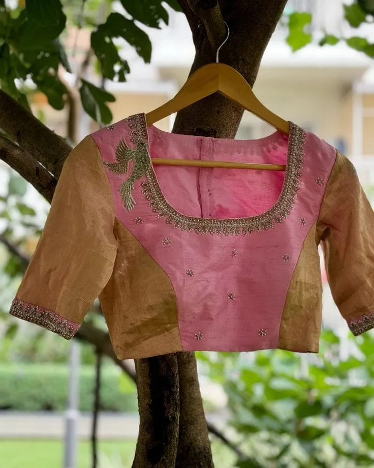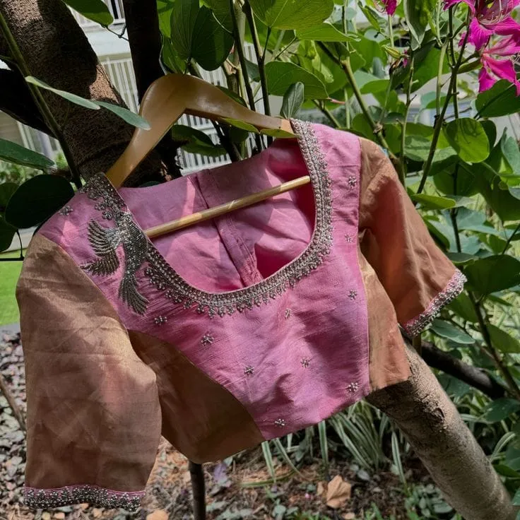 Royal Elegance Baby Pink Raw Silk Zardosi Designer Blouse for Bridal Glam