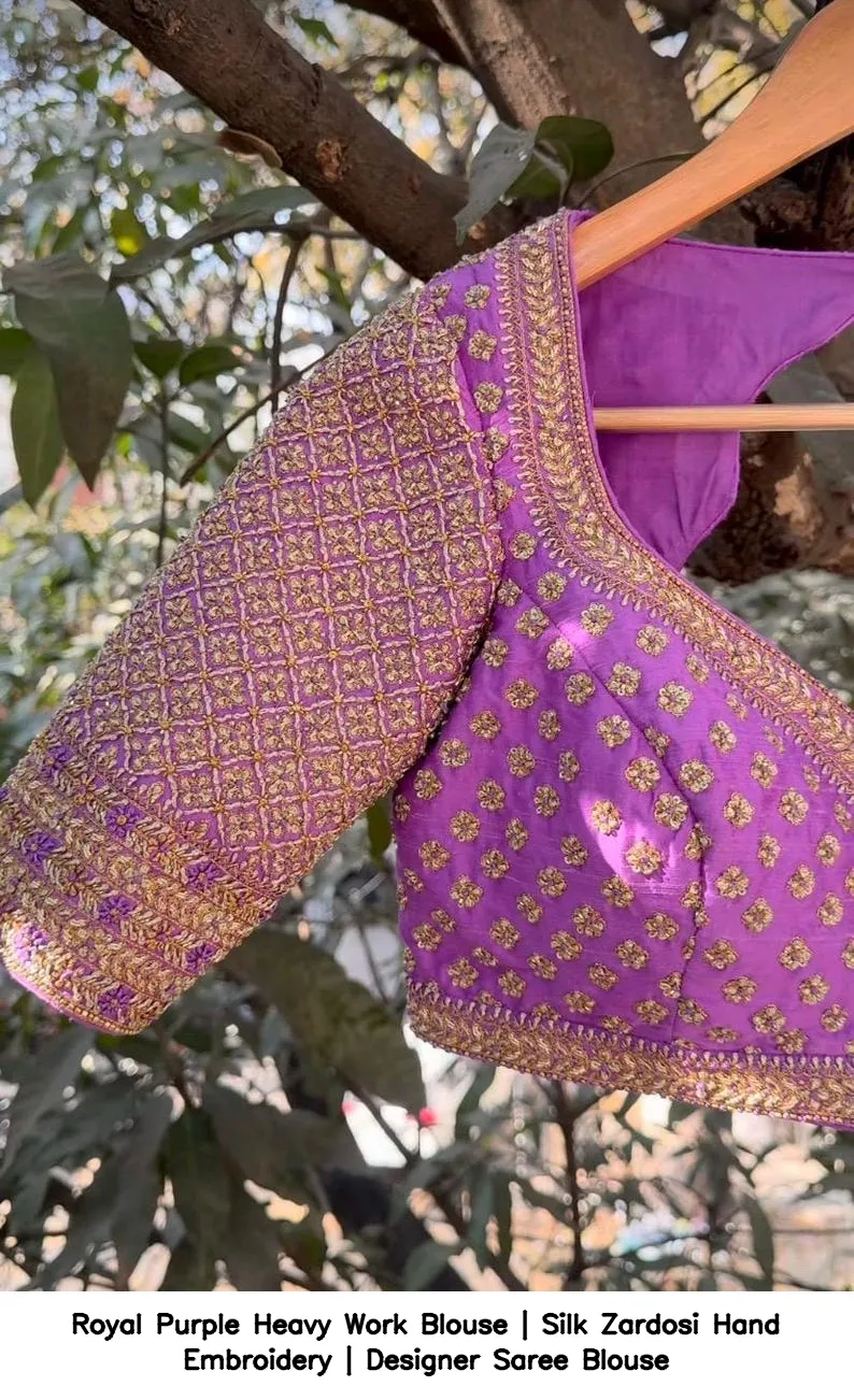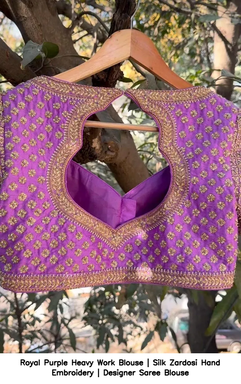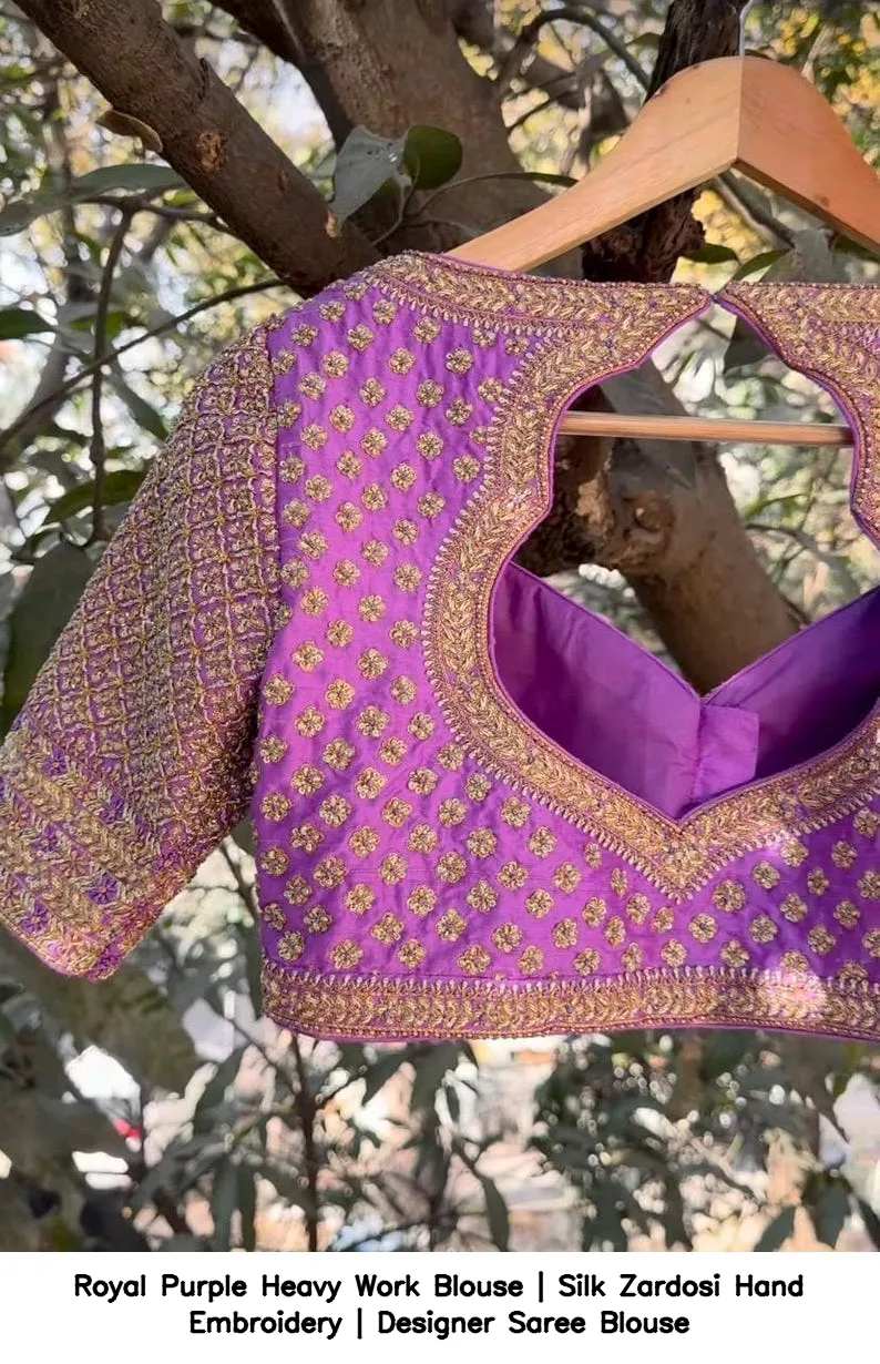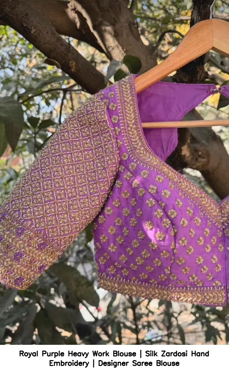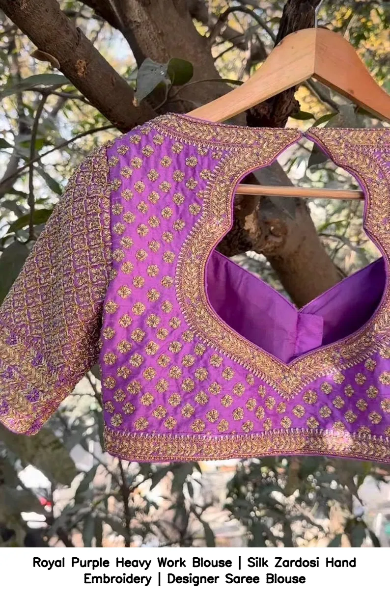Royal Purple Heavy Work Blouse | Silk Zardosi Hand Embroidery | Designer Saree Blouse