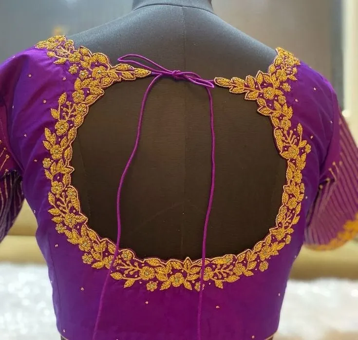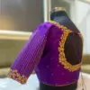 Product Name: Royal Purple Lines Maggam Work Blouse Custom Size Designer Bridal Piece