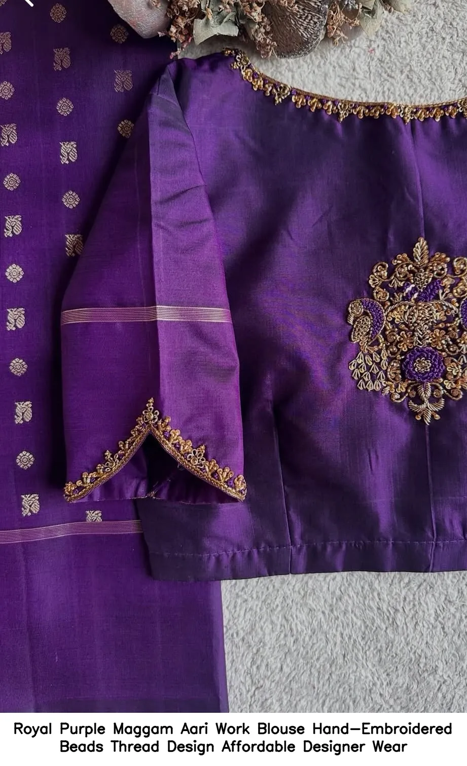 Royal Purple Maggam Aari Work Blouse Hand-Embroidered Beads Thread Design Features and Benefits