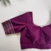 Product Name: ​​​​Royal Purple Silk Blouse with Minimalist Gold Aari Work – Designer Sweetheart Neck Bridal Blouse