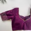 To keep your Royal Purple Silk Blouse with Minimalist Gold Aari Work – Designer Sweetheart Neck Bridal Blouse looking its best, follow these care instructions. Hand wash gently in cold water. Avoid direct sunlight. Iron on low heat to maintain the fabric’s sheen.