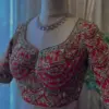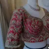 Product Name: Royal Red Hand-Embroidered Zardosi Bridal Blouse – Custom Heavy Work Wedding Lehenga Choli Top