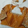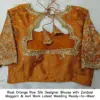 Product Name: Rust Orange Raw Silk Designer Blouse with Zardosi Maggam & Aari Work – Latest Wedding Ready-to-Wear