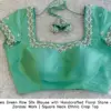 Sea Green Raw Silk Blouse with Handcrafted Floral Stone & Zardosi Work | Square Neck Ethnic Crop Top