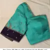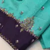 The Sea Green Silk Blouse with Contrast Purple Border and Intricate Zari Striped Maggam Work is available for 3500 INR. This half pattu blouse is part of the Sm Designs brand, ensuring quality and style. It comes in multiple colors including Red, Pink, Blue, Purple, and Wine. Sizes available are XL, XXL, and 3XL.