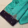 A: Yes, the sea green color with the contrast purple border makes it versatile for pairing with various outfits, especially traditional and festive attire.