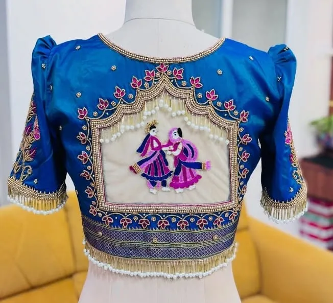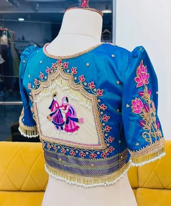 Product Name: Shop Blue Wedding Palki Design Maggam Work Blouse High Quality Affordable
