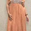 Product Name: Shop Latest Peach Maggam Work Long Frock – Custom Fit & Budget Friendly