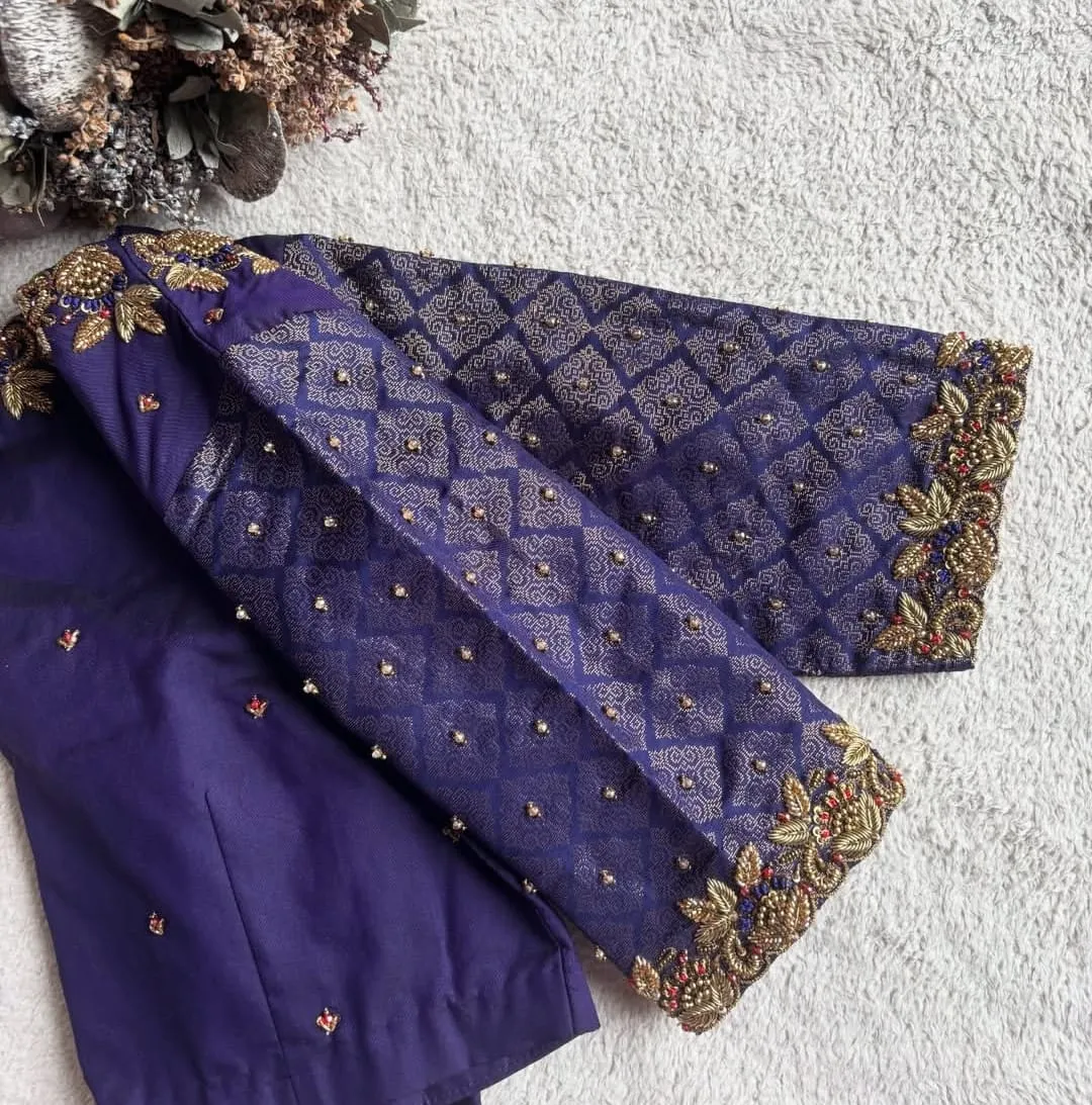 Shop Purple Cutwork Maggam Work Blouse Bridal Designer Blouse with Perfect Finish for your special occasions. This exquisite blouse enhances your elegance and style. Moreover, it is designed to provide a perfect fit for every body shape.