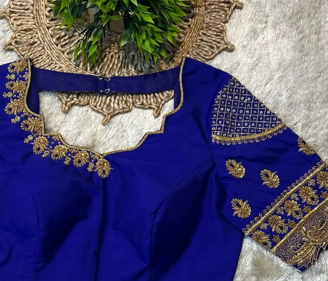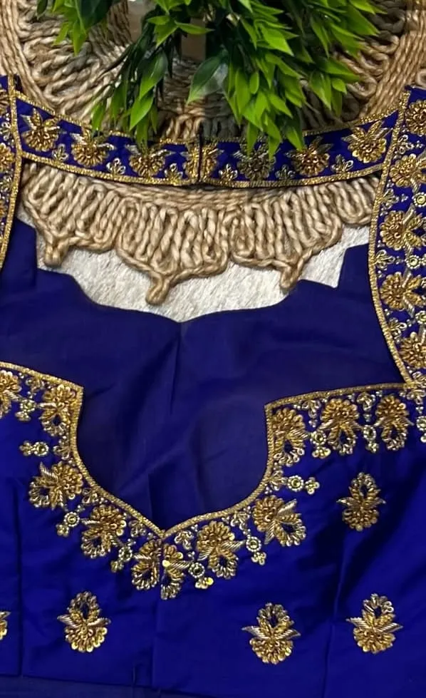 Stunning Blue Raw Silk with Maggam Work blouse. Crafted for wedding and festive wear, pairs beautifully with silk sarees and lehengas.