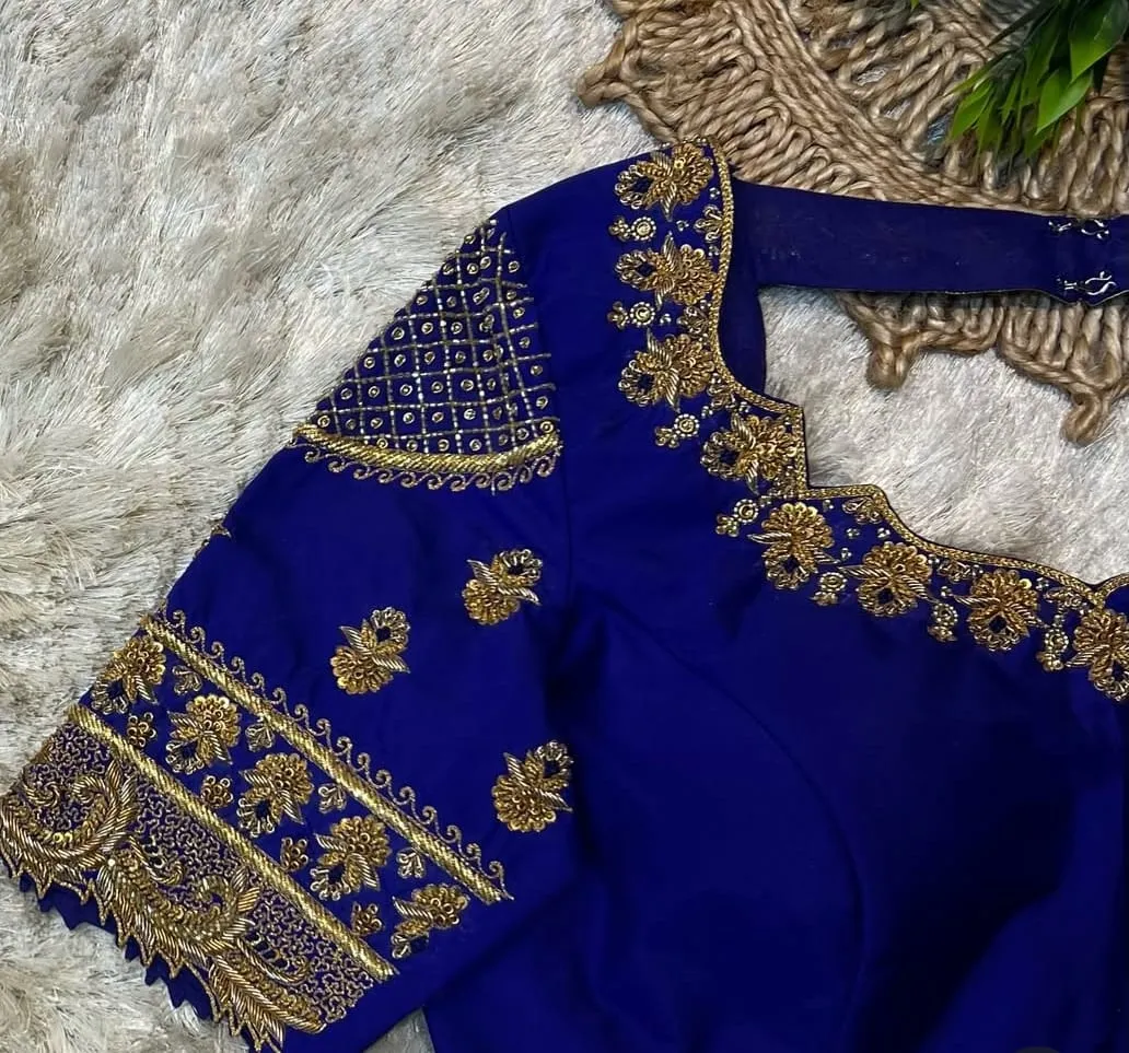 Shop Royal Blue Designer Blouse Handcrafted Maggam Aari Work Perfect for Special Occasions
