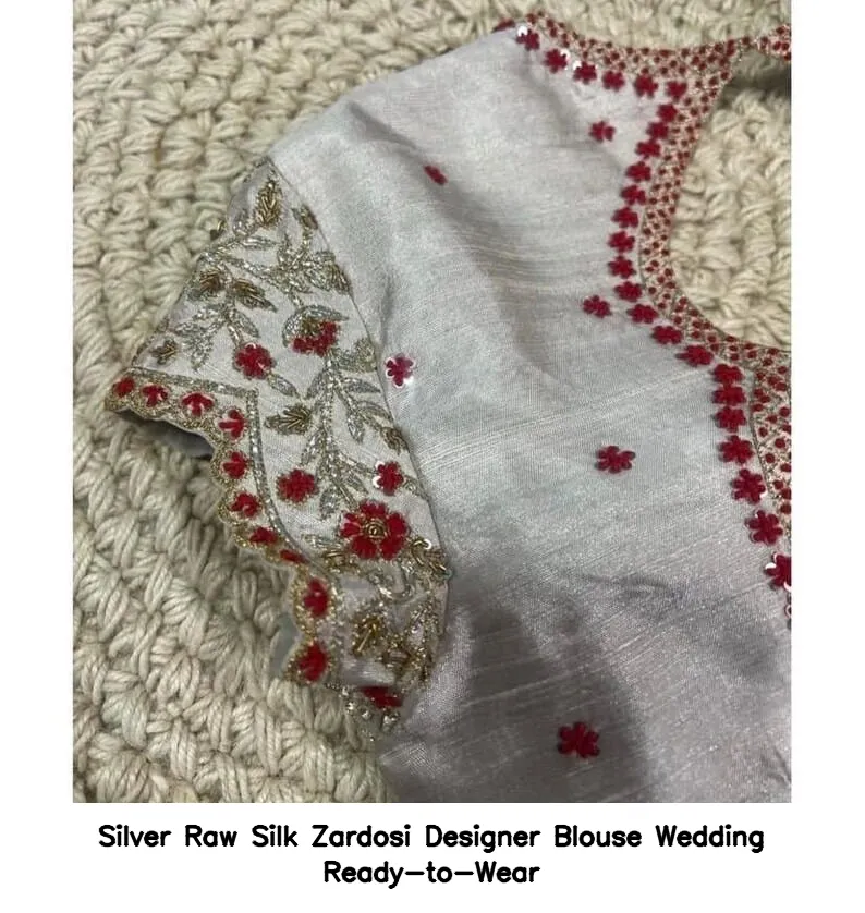 Why Choose Silver Raw Silk Zardosi Designer Blouse – Wedding Ready-to-Wear?