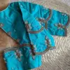 The Sky Blue Pearls Maggam Work Blouse is made from premium half pattu fabric. It comes in sizes XL, XXL, and 3XL, and is available in vibrant colors like Red, Pink, Blue, Purple, and Wine. For more options, browse our collection.