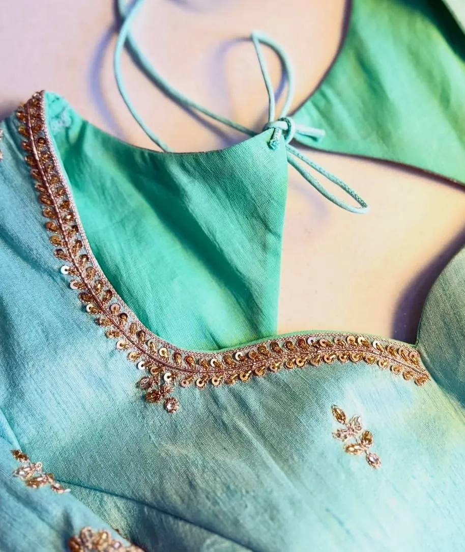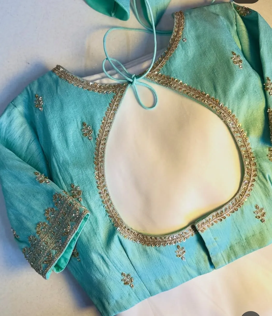 Why Choose Sky Blue Raw Silk Maggam Work Blouse Elegant Handmade Designer Blouse?