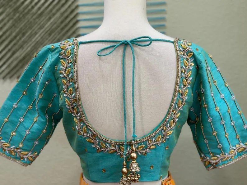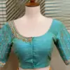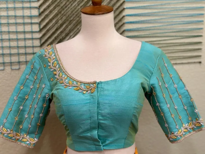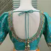 Product Name: Sky Blue Zardosi Maggam Blouse Trending Lines Pattern at an Affordable Price