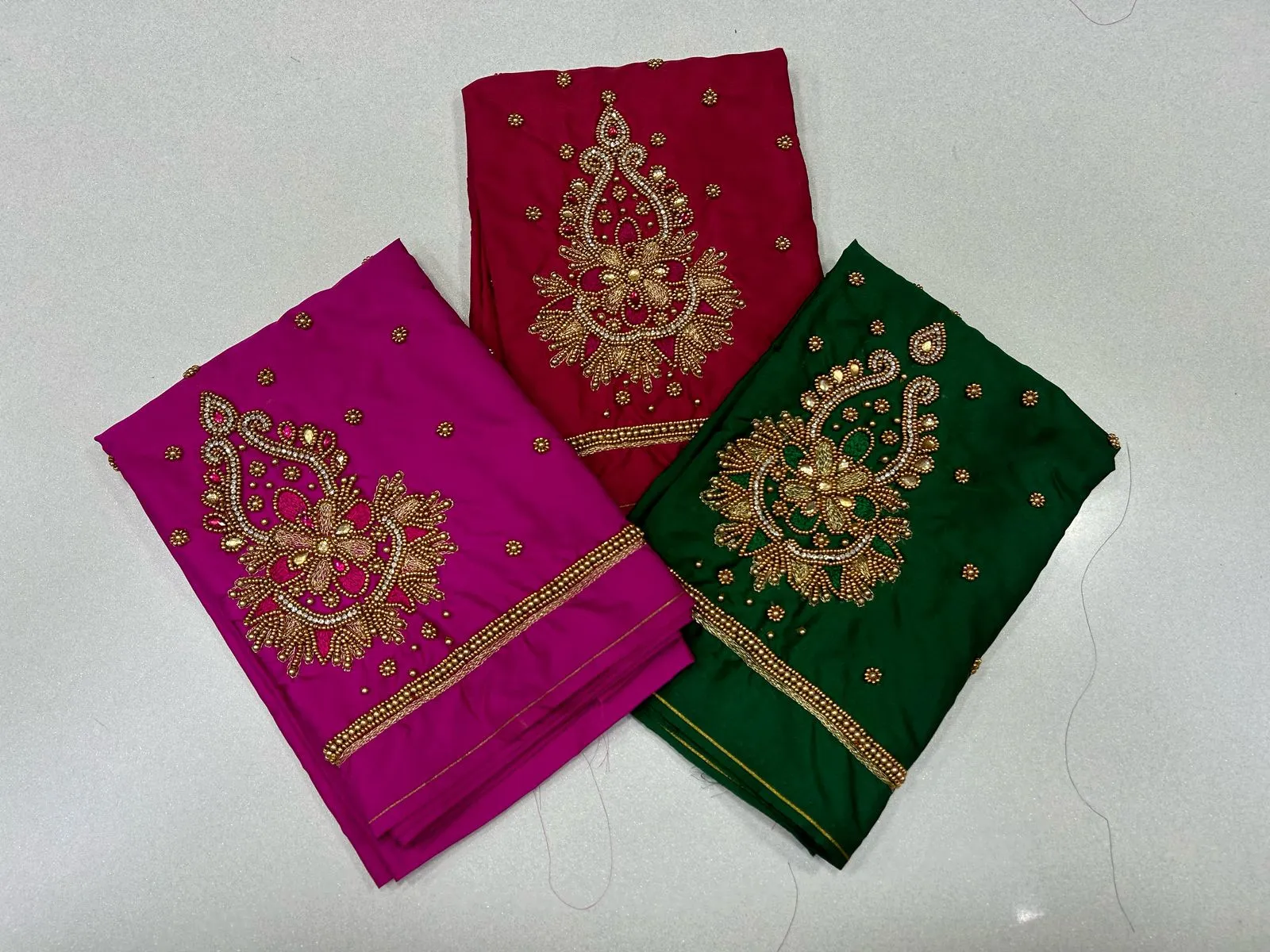 To maintain the quality of your blouse, hand wash it gently with cold water. Avoid harsh detergents and hang it to dry. Additionally, iron on low heat to preserve the beadwork.