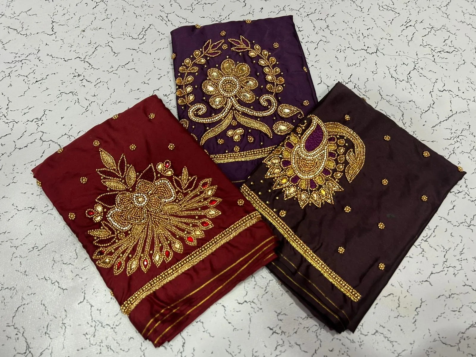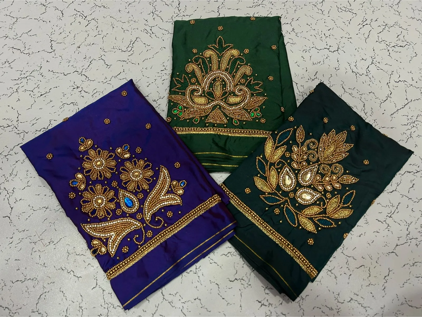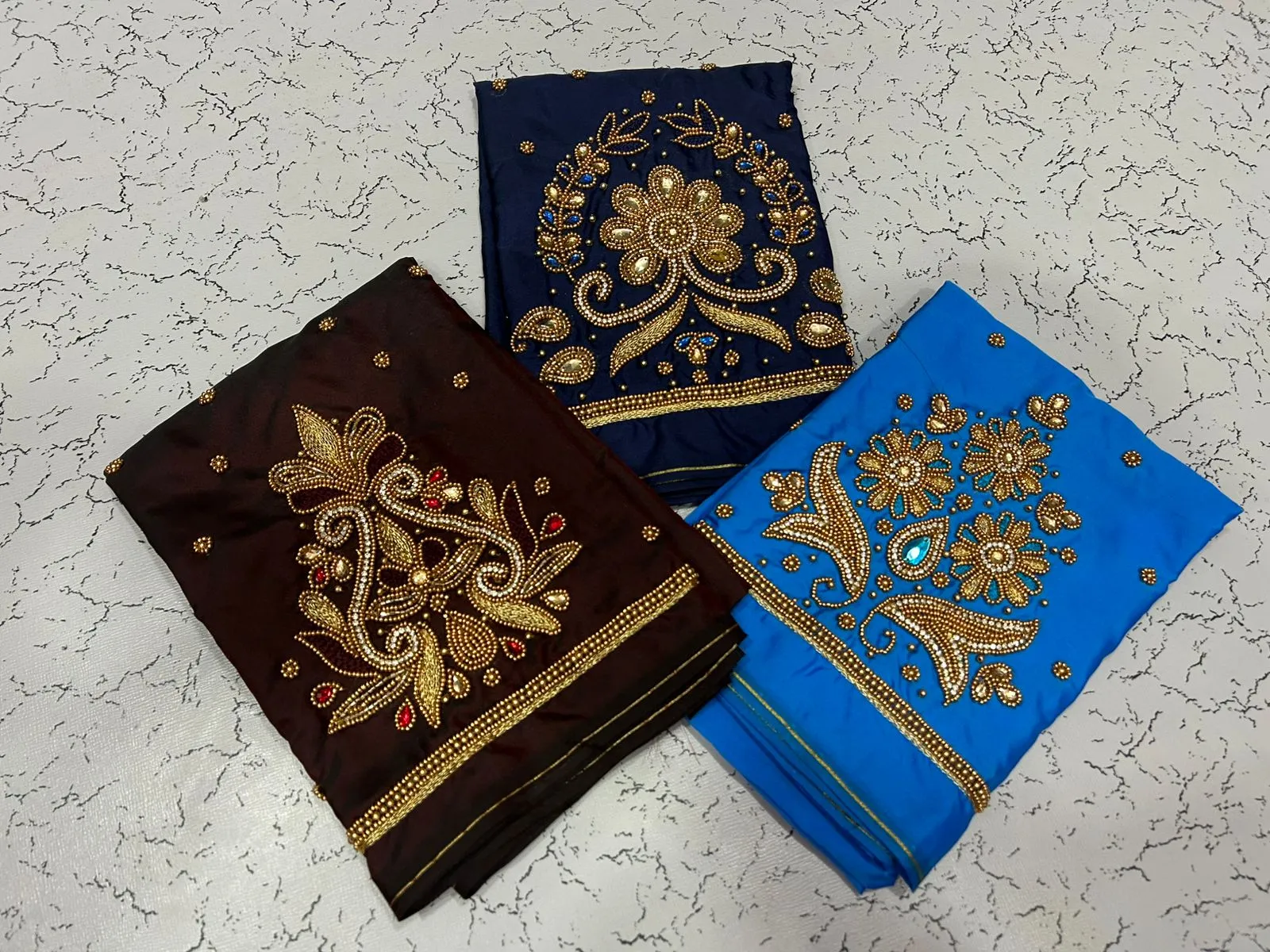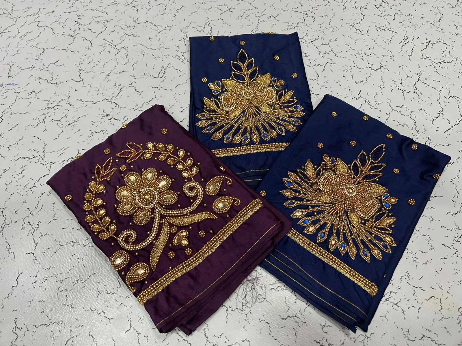 Q: What is the quality of material used in the in Style Navy Blue Designer Beads Blouse at Best Price?