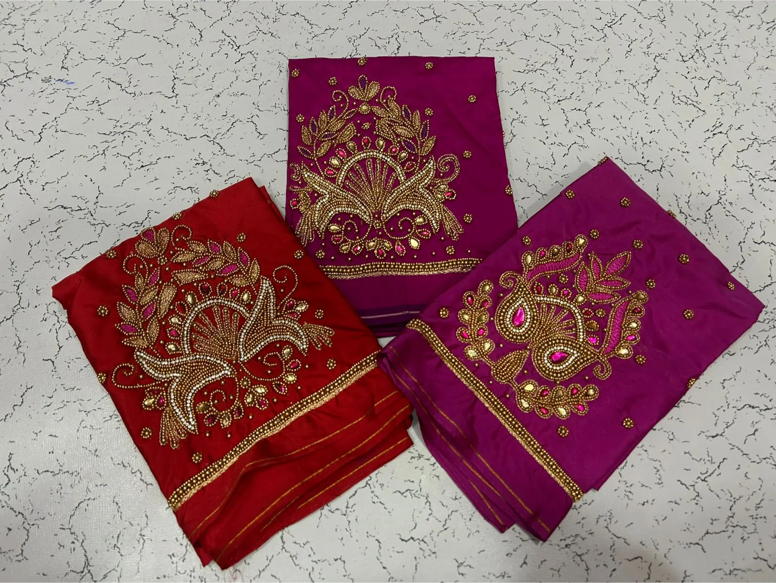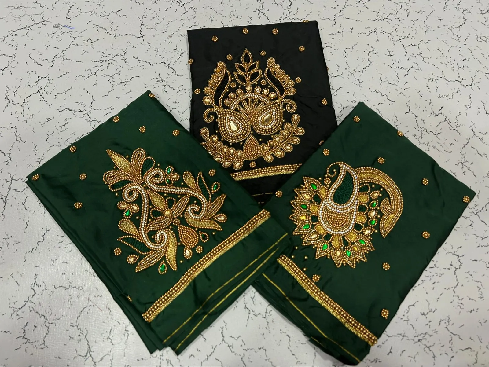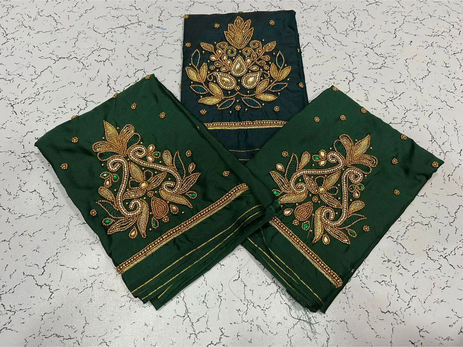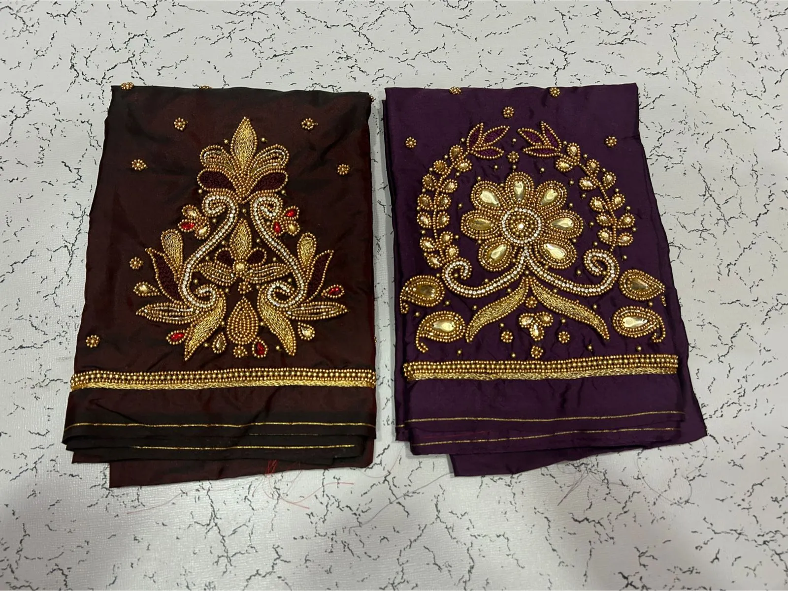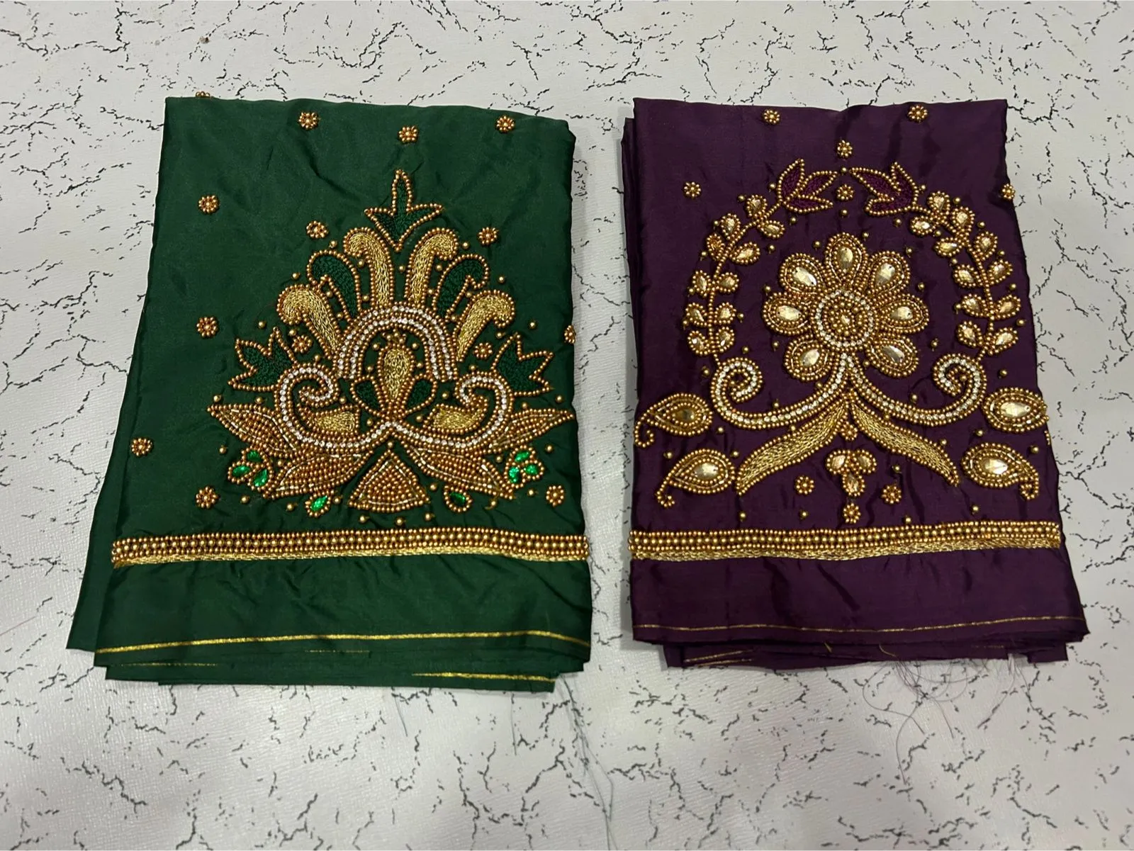Q: What is the quality of material used in the in Style Navy Blue Designer Beads Blouse at Best Price?